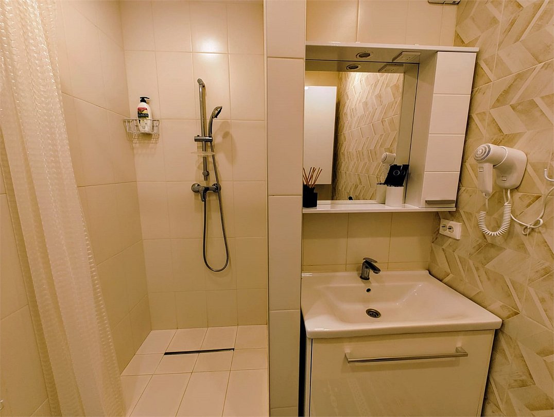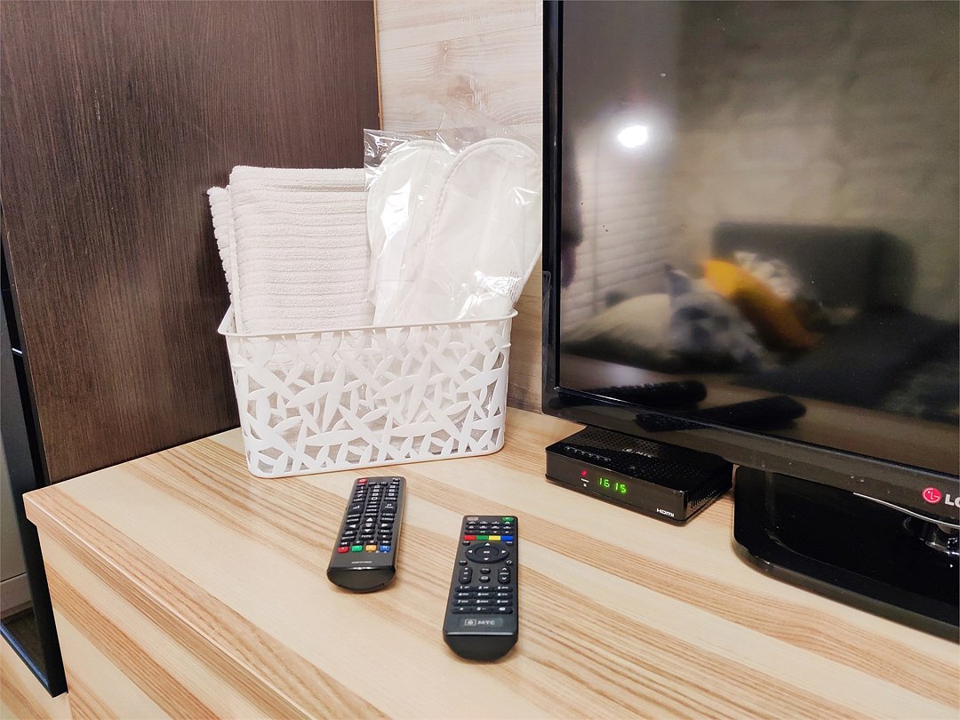 телевизор, Wi-Fi, холодильник, фен, электронные замки, микроволновая печь, утюг, душевая кабина, банные полотенца, гигиенические средства, лоджия, вид на город, туалет, цифровое тв, диван-кроватьВ аппартаментах