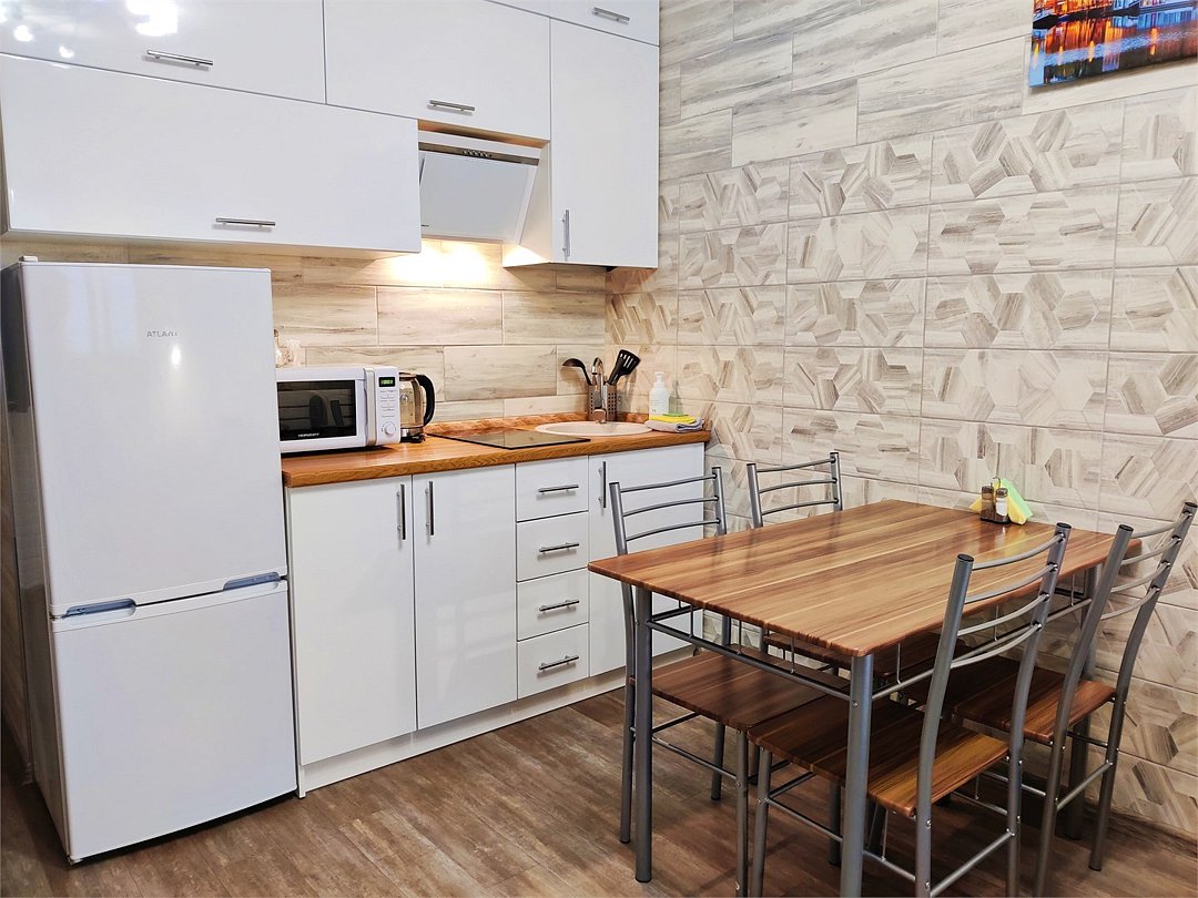 телевизор, Wi-Fi, холодильник, фен, плита для приготовления пищи, микроволновая печь, утюг, ванна, банные полотенца, тапочки, косметические средства, стулья, обеденный стол, стол, туалетные средства, туалет, цифровое тв, духовой шкаф, морозильная камераВ аппартаментах