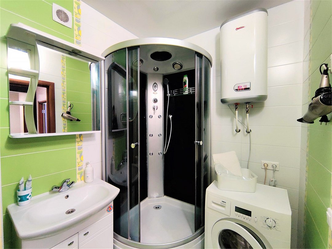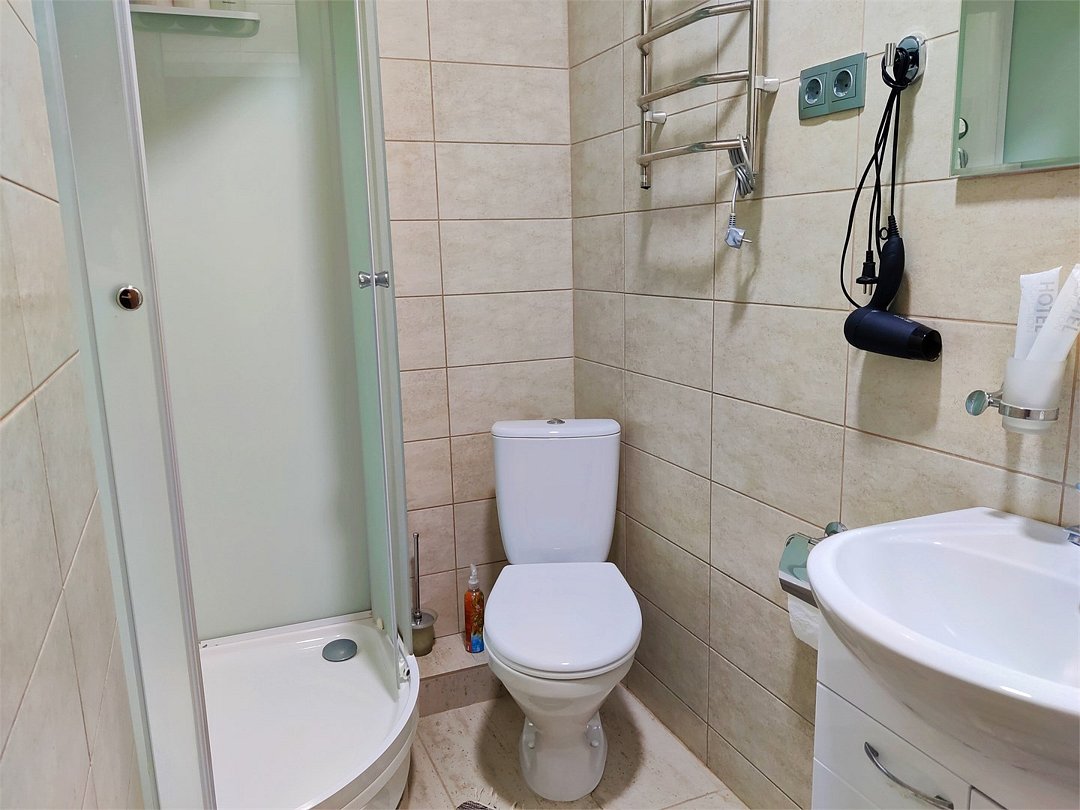 телевизор, Wi-Fi, холодильник, фен, электронные замки, плита для приготовления пищи, микроволновая печь, утюг, душевая кабина, тапочки, гигиенические средства, душ, туалетные средства, туалет, духовой шкаф, духовкаВ квартире