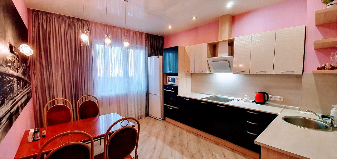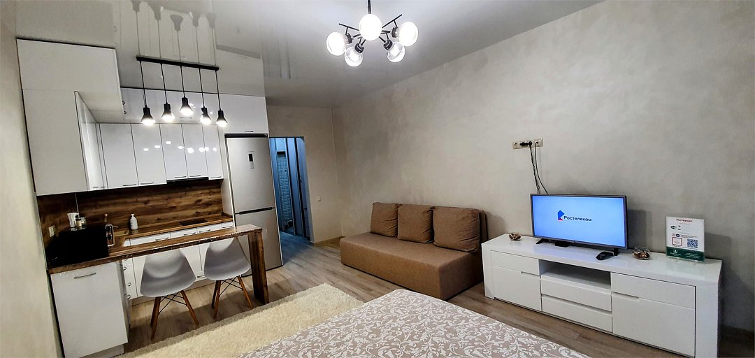 1-комнатная квартира с раскладным диваном. Рядом находится множество магазинов и крупнейший в Сургуте в ТРЦ "Аура" Идеально для деловой командировки или романтического вечера. Для отдыха и сна: - телевизор со Smart TV и множеством ТВ каналов - безлимитный интернет Wi-Fi - чистое и свежее постельное белье Гигиена и чистота: - жидкое мыло-пенка - гель для душа - индивидуальные зубные наборы - чистые махровые полотенца - индивидуальные тапочки - хороший фен Бытовая техника: - стиральная машина - гладильная доска - хороший утюг - сушилка для белья Кухонная техника и посуда: - холодильник - электрический чайник - микроволновка - варочная панель - духовой шкаф - посуда и приборы Отчетные документы: - работаем с физическими и юридическими лицами - счет и чек с QR-кодом - оплата через расчетный счет - заключаем договоры с организациями - наличной и безналичная формаКвартира-студия в ЖК "Новые ключи"