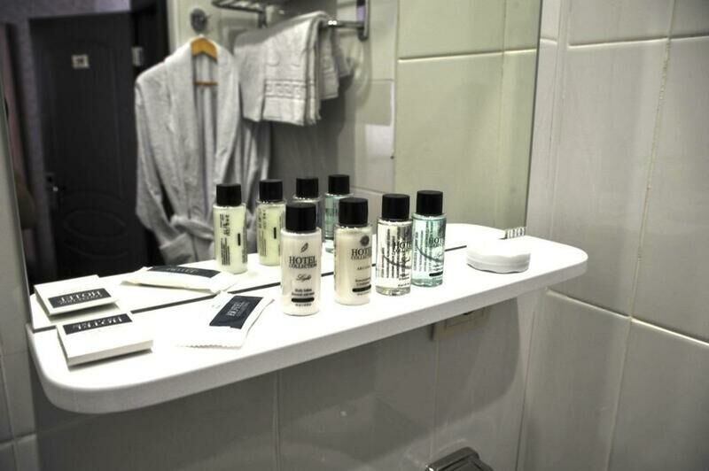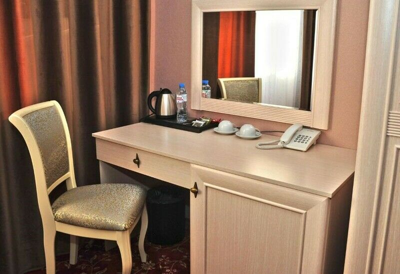 Пятиэтажный корпус отеля включает в себя двух- и трехместные номера разной категории комфорта. В номерах классический интерьер, везде предусмотрен санузел с душем или ванной, есть телевизор и электрочайник, в улучшенных вариантах установлены кондиционеры.