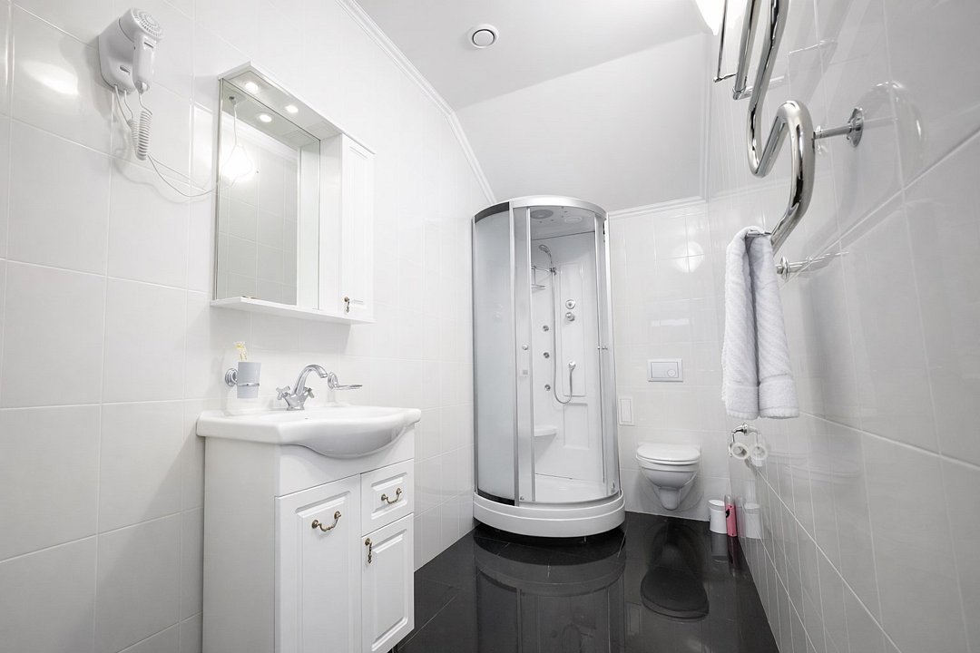 телевизор, два телевизора, Wi-Fi, телефон, светильник, настольные лампы, фен, вентилятор, электронные замки, душевая кабина, санузел, халаты, банные полотенца, тапочки, балкон, балкон с красивым видом, кровать «King size», унитаз, раковина, душ, вид во двор, туалетные средства, туалет, вид на парк, цифровое тв, диван-кровать, внутренний телефон, телевизор с плоским экраном, мини-холодильник, гостиничная парфюмерия, без окна, вид на лес, можно с питомцамиВ гостиничном номере