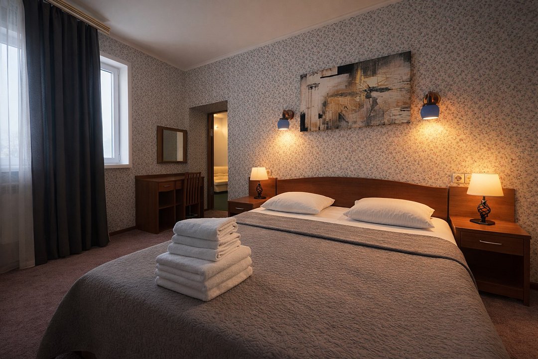 дек. 2021 г.Декабрьская поездкаИзучив отзывы и цены о гостиницах в Сургуте остановилась на "Ливадии". В декабре 2021 года пришлось два раза по делам приезжать в этот город и останавливаться здесь. Гостиница отличная. Уютный, комфортный номер с удобной кроватью, необходимой мебелью, хорошей сантехникой. Зубная щетка, паста, шампунь, гель для душа. Девушки-администраторы вежливые, спокойные, отзывчивые. Готовят вкусно, обильно и цены не заоблачные. Ужин был из картофеля, мяса и салата. Насколько не люблю картофель, но было так классно приготовлено, что съела всё. Завтрак за один присест и не одолеешь. Еще понравился хлеб, который он подают - хрустящий с приправками. Внутренний интерьер понравился, вид из окон красивый. Когда приехала, то шел снежок и гостиница, окруженная заснеженными деревьями, украшенная святящимися гирляндами была похожа на сказку. Спасибо людям, которые умеют делать отдых на высоком уровне.
