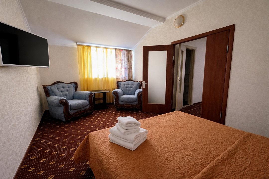 К услугам гостей представляется 20 уютных, по-домашнему обставленных номеров, в которых есть все для комфортного отдыха. На территории также обустроены финская и турецкая бани, бассейн, камера хранения.