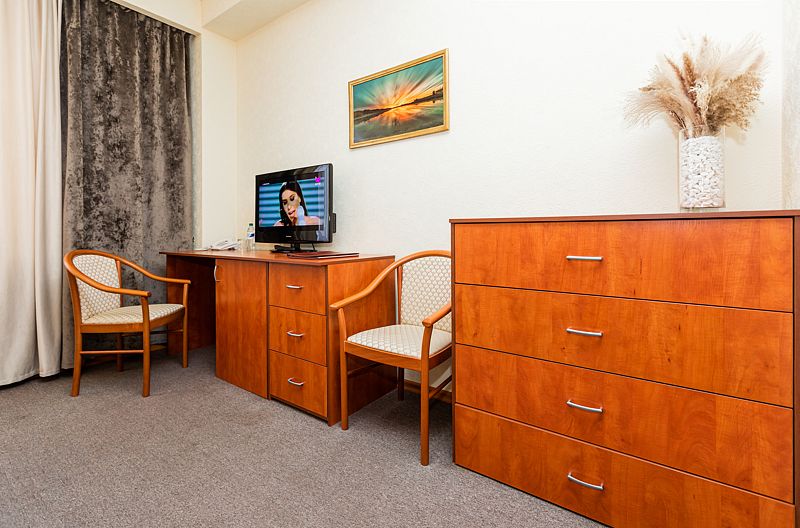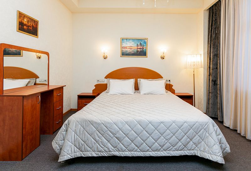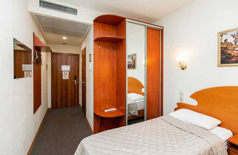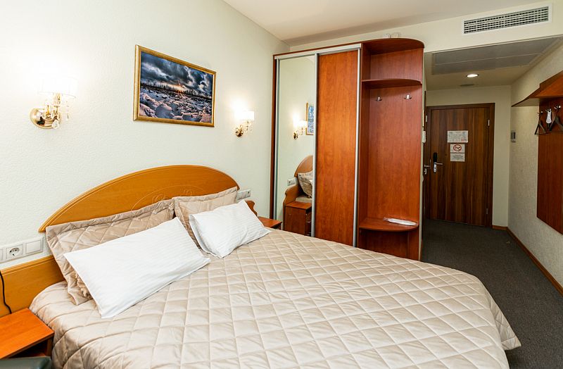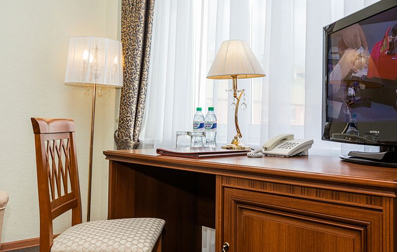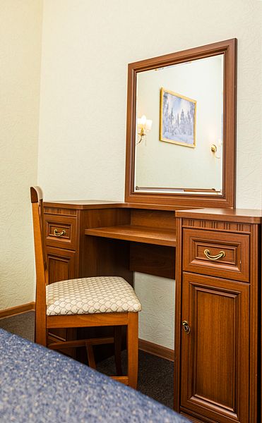 Дизайн выполнен в классическом стиле. Номер оснащён письменным столом и функциональной мебелью. Данный номер идеально подходит для одноместного или двухместного размещения.