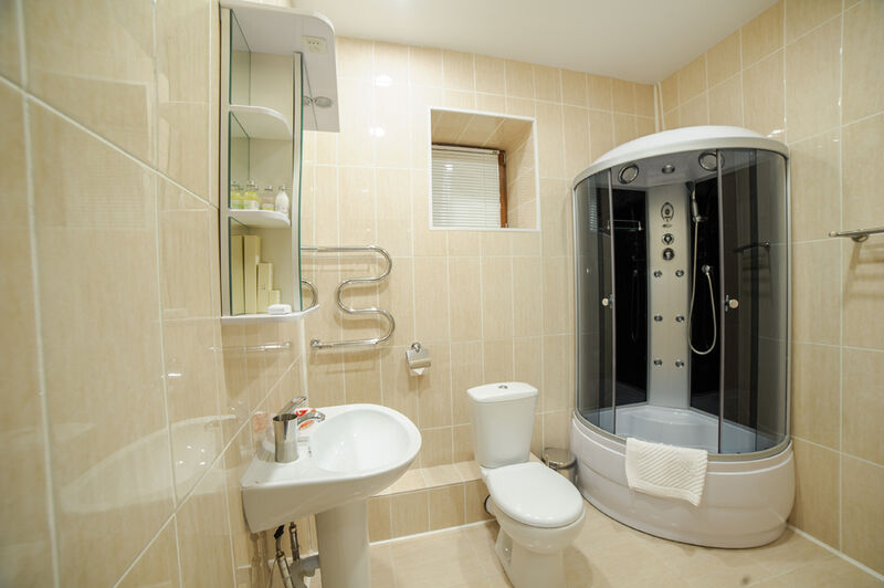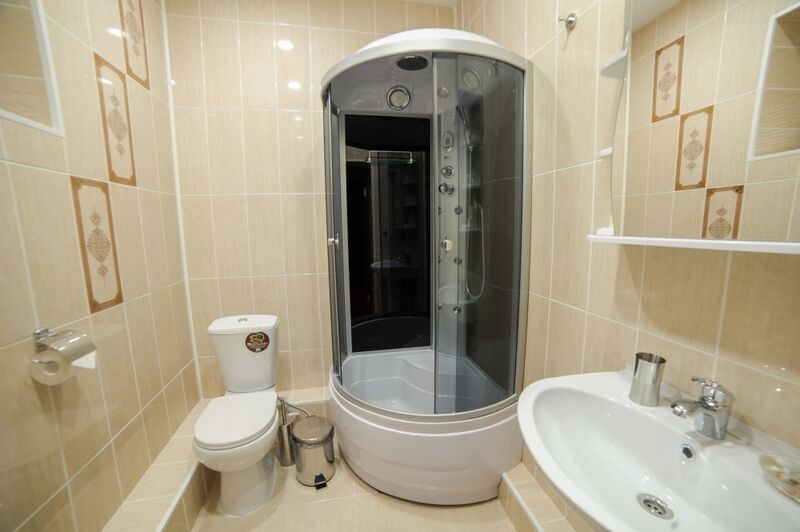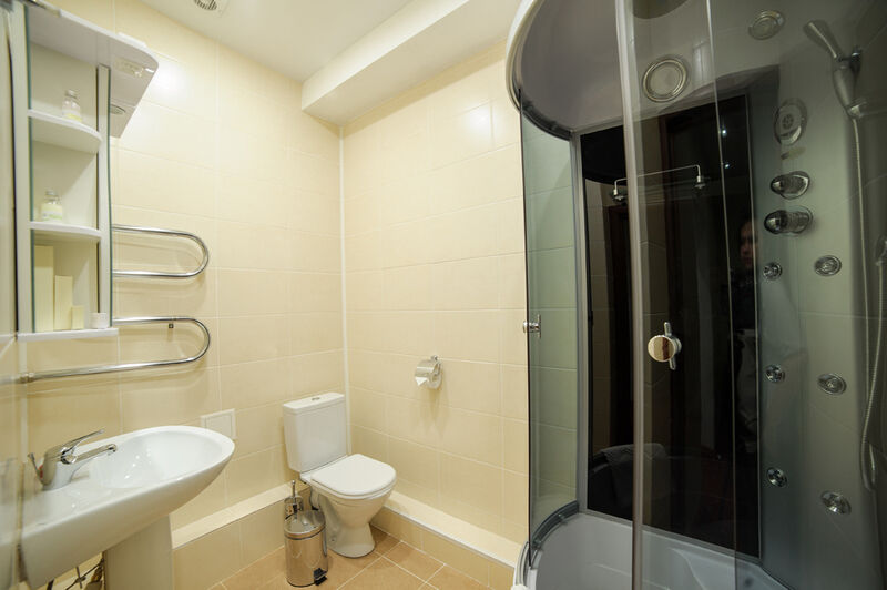 Двуспальная кровать, LED-телевизор, чайник и посуда, мини-бар с напитками, сейф, кондиционер, душ