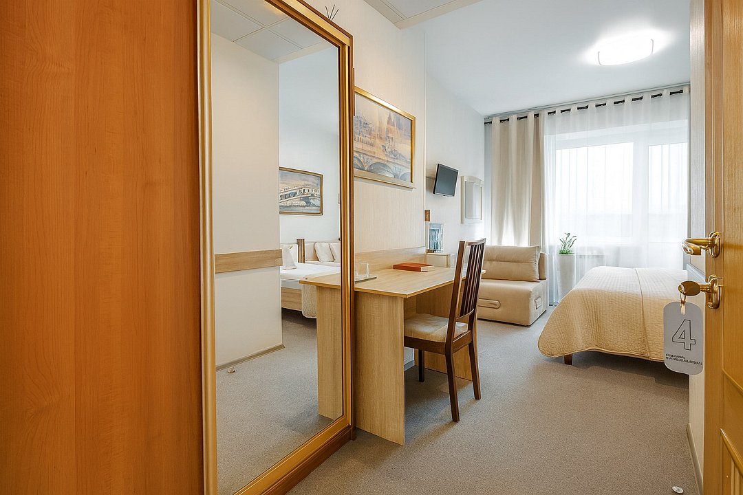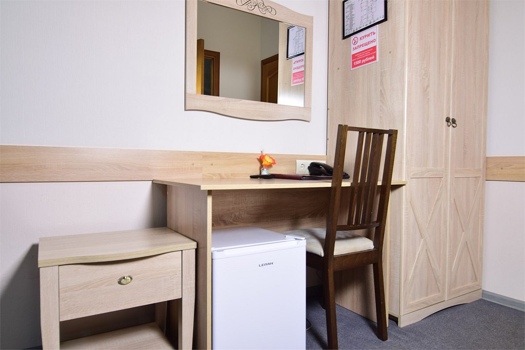 телевизор, спутниковое телевидение, кабельное телевидение, Wi-Fi, интернет, телефон, холодильник, фен, система безопасности, обогреватель, ванная комната, душевая кабина, водонагреватель, халаты, тапочки, полутораспальная кровать, ортопедический матрас, стулья, шкаф для одежды, вешалки, письменный стол, обслуживание номеров, унитаз, раковина, косметическое зеркало, отопление, душ, кулер на этаже, вид во двор, стаканы, стул, стол, туалетные средства, туалет, цифровое тв, внутренний телефон, телевизор с плоским экраном, мини-холодильник, номер для некурящих, рабочий стол, антибактериальное средство для рук, холодильный шкаф, уборка номера, вешалки-плечики, без питомцевВ гостиничном номере