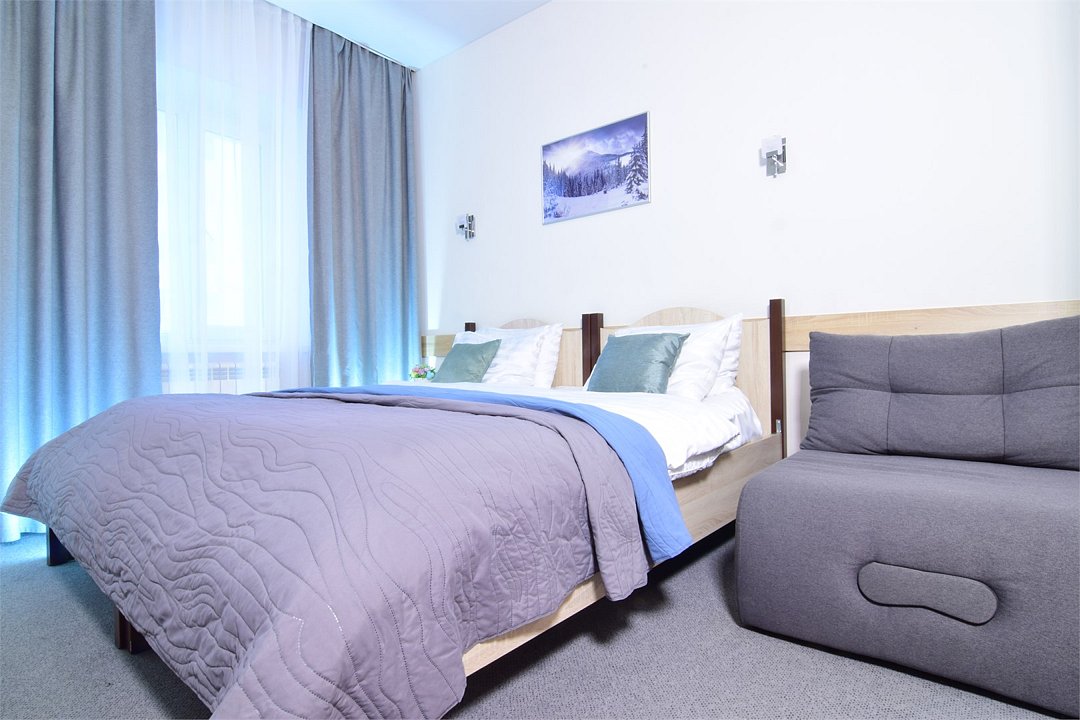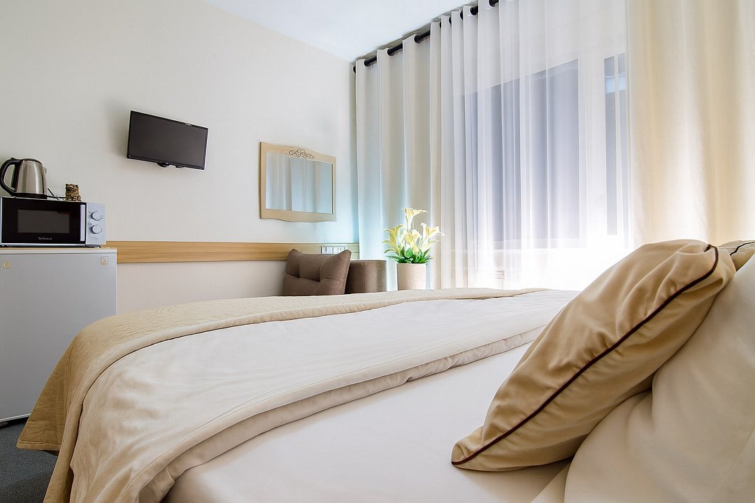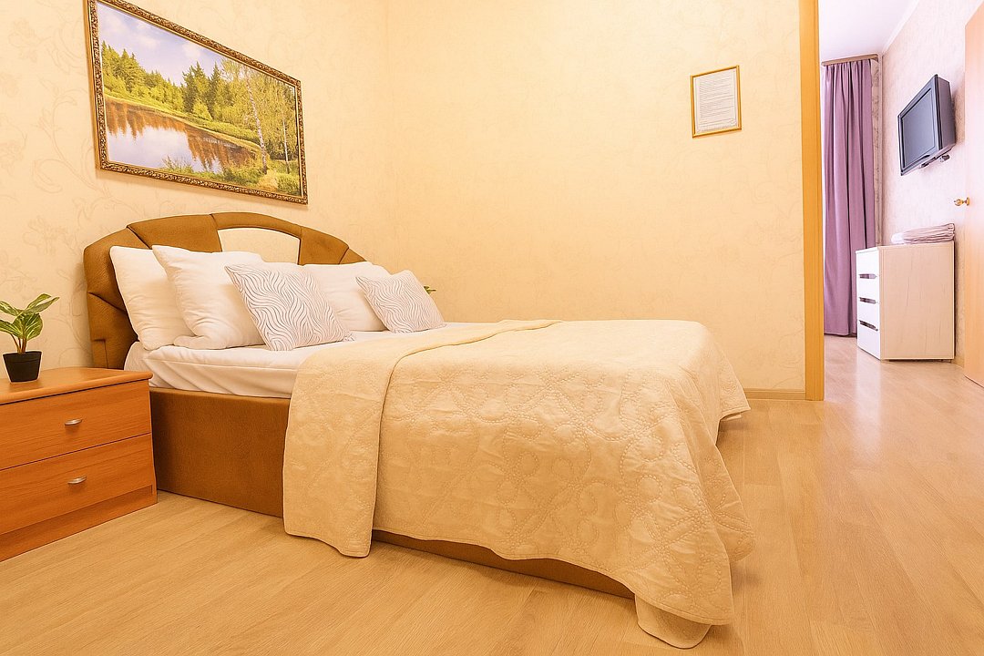 Приглашаем вас оценить комфорт наших улучшенных апартаментов комфорт-класса. Каждая деталь создана для вашего удобства. В номере — телевизор 42 дюйма, холодильник, чайник и микроволновая печь для легких перекусов. Уютная кровать с матрасом и белоснежным постельным бельем гарантирует крепкий сон. В санузле с душевой кабиной — мягкие махровые полотенца и косметический набор для вашего комфорта.Услуги и удобства