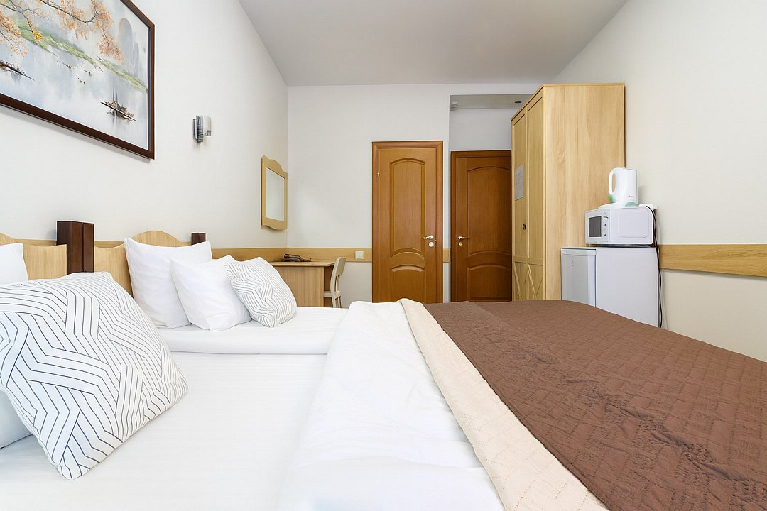 Приглашаем вас оценить комфорт наших номеров комфорт-класса с дополнительным спальным местом. Каждая деталь создана для вашего удобства. В номере — телевизор для отдыха, холодильник, чайник и микроволновая печь для легких перекусов. Уютная кровать с матрасом и белоснежным постельным бельем обеспечит вам крепкий сон. В санузле с душевой кабиной — мягкие махровые полотенца и косметический набор для вашего комфорта.Услуги и удобства