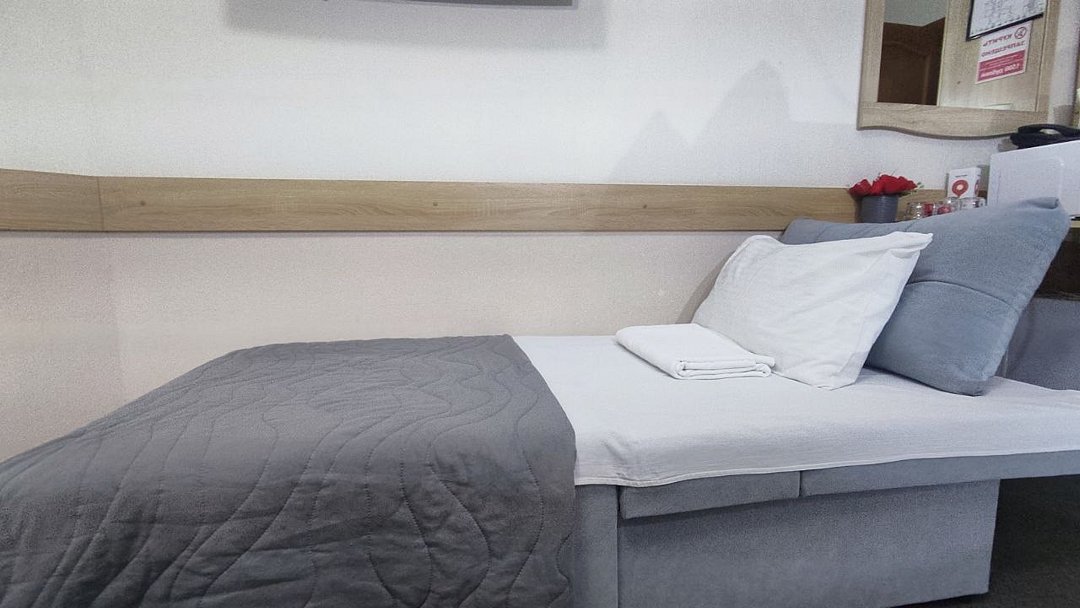 Приглашаем вас насладиться уютом наших одноместных номеров стандартной категории, где каждая деталь создана для вашего максимального комфорта. В вашем распоряжении найдется все необходимое: телевизор для отдыха, холодильник и чайник для вашего удобства, а также микроволновая печь для быстрого приготовления закусок. Кровать с удобным матрасом и белоснежным постельным бельем гостиничной серии обеспечит вам спокойный сон в комфортной обстановке. В вашем личном санузле с душевой кабиной и туалетом вы также найдете мягкие махровые полотенца и косметический набор для вашего удобства.Услуги и удобства