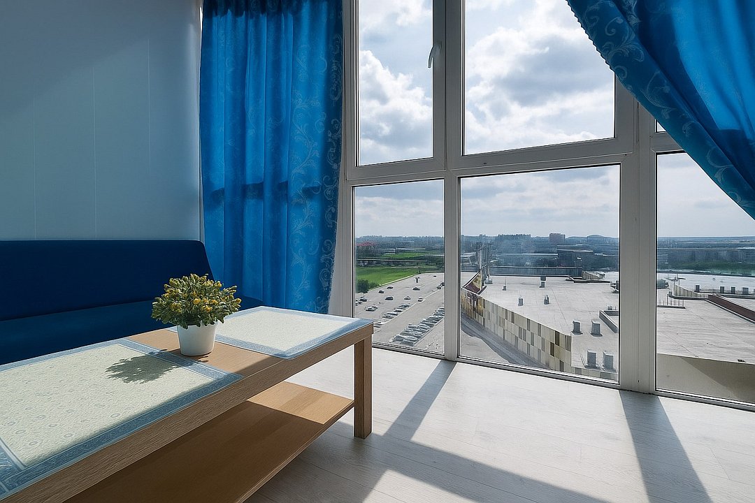 Прекрасная квартира с завораживающим видом на весь город, укомплектована всем необходимым для комфортного краткосрочного, и длительного пребывания. Балкон с мебелью, и панорамным остеклением в пол - позволит встречать, и провожать дни с вдохновением за чашкой любимого кофе. Квартира Находиться в северном жилом районе города, в доступной близости к торговому центру АУРА и ГИПЕР-ЛЕНТА. Удобная дорожная развязка позволяет с лёгкостью отправится в любые направления города или междугородние поездки. - АЭРОПОРТ 15 МИНУТ. - Ж\Д 5 МИНУТ.Услуги и удобства