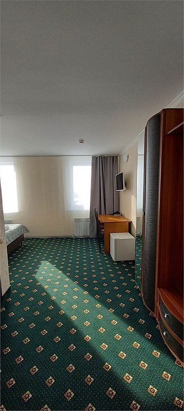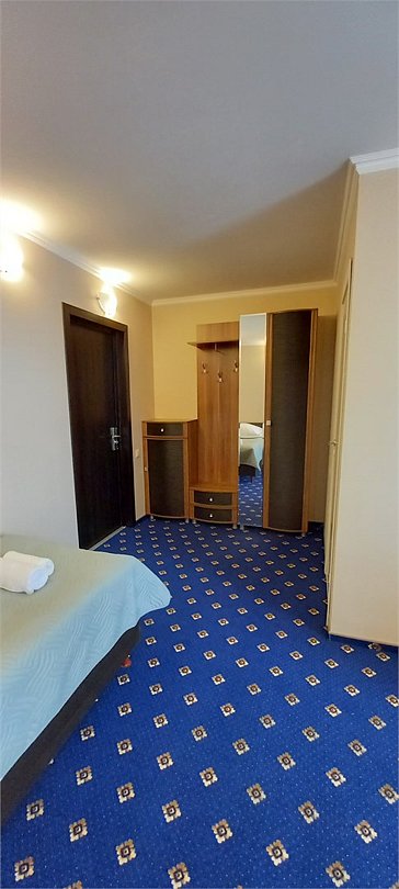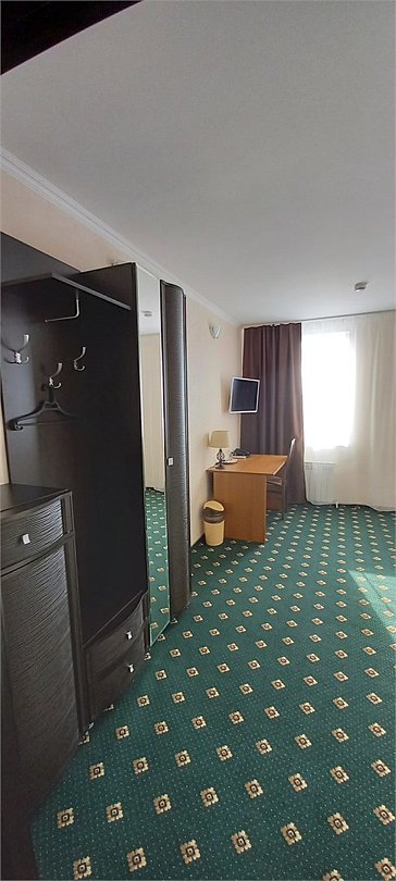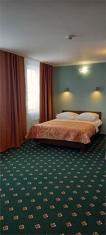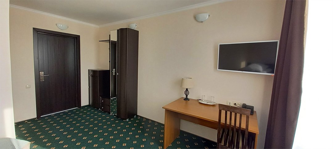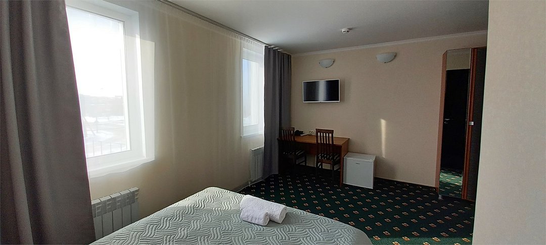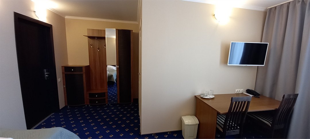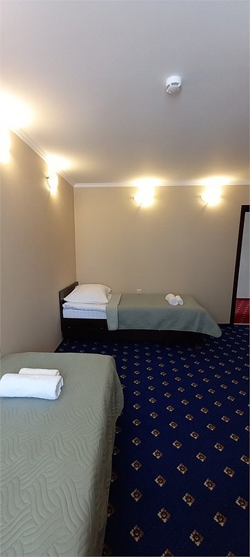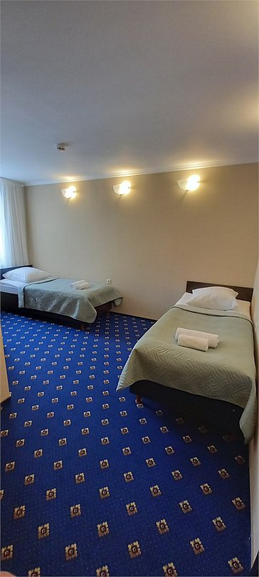 В двухместном номере с собственным санузлом, туалет, раковина, душевая кабина, халат, фен, набор полотенец, шампунь, гель для душа, мыло, зубной набор. Wi-Fi, телефон, ЖК-телевизор, стол, стулья, шкаф, прикроватные тумбочки, зеркало, две односпальных кровати.Услуги и удобства