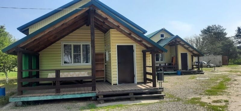 Домики 2-х комнатные с террасой для круглогодичного проживания. В каждом домике душ, туалет, кухня, горячая вода, холодильник, посуда, телевизор, спутниковое телевидение.