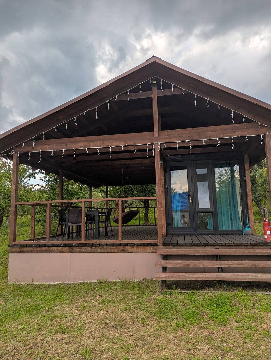 Семейный отдыхДостоинстваДомики комфортные, есть все необходимое (чайник, плита, посуда, холодильник, даже стиральная машина). Большая терраса, где можно провести время в ненастную погоду, на террасе очень удобные качели для двоих, хороший столик и 4 стула. В общем, с террасы не хочется уходить. Рядом с домиком стоит мангал. Все очень удобно и комфортно! Приятно было пообщаться с хозяином, он провел экскурсию по базе, рассказал о своих планах, было интересно. Можно купить овощи и ягоды по приемлемым ценам