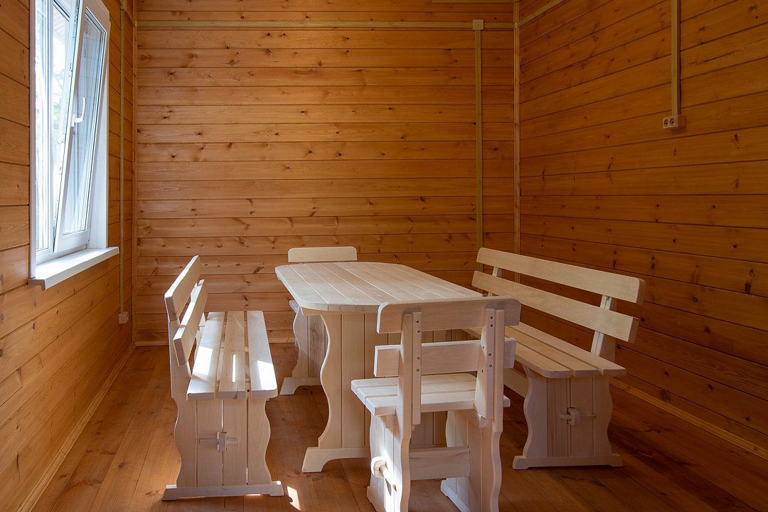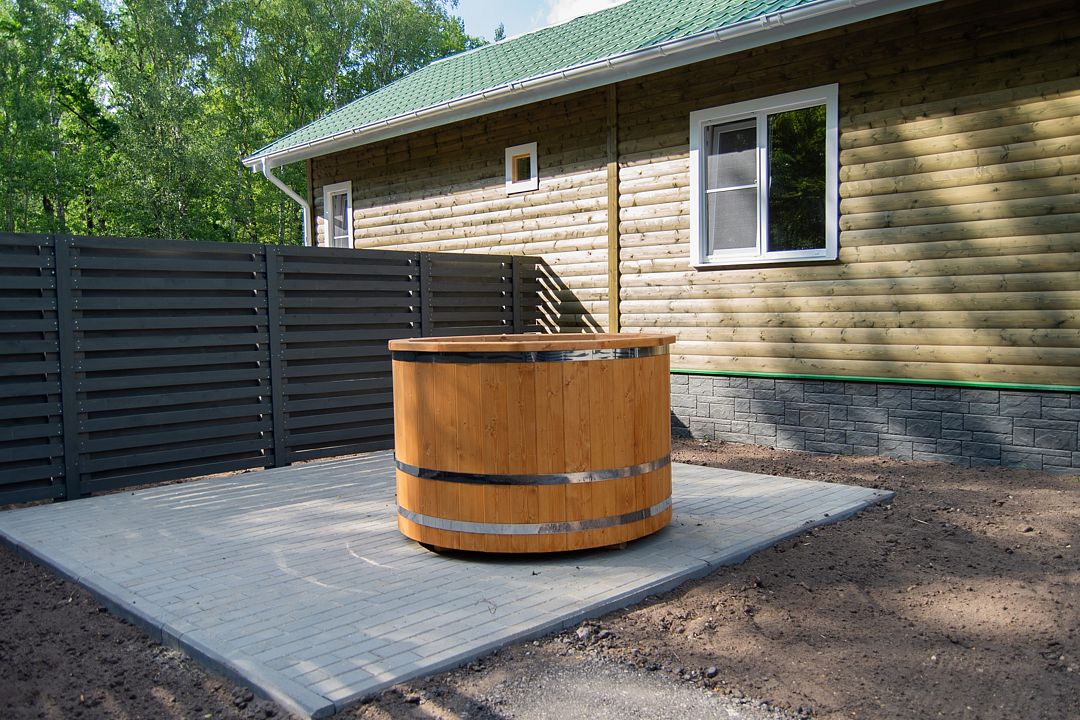 Инфраструктура: купель, зона отдыха, душВместимость бани — 6 гостей.