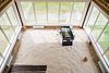 - Расслабляющая зона в виде отдельной комнаты с панорамным остеклением, с видом на потрясающей красоты деревья, и полом, вместо которого находится беленький песочек, на котором находится игра "настольный футбол".