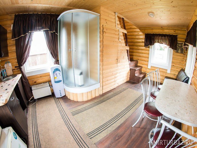 Гостевой Домик "Форт" — двухэтажный дом на 6-8 человек (спальных мест 6), на первом этаже которого располагается кухня, обеденная зона, а второй этаж полностью предусмотрен для отдыха.