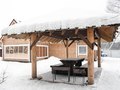 - Рядом с домиком в вашем распоряжении находится довольно большая беседка с мангалом, на котором вы можете легко приготовить себе сочную пищу, а так же деревянная горка с тюббингами, практикуемая в зимний период.