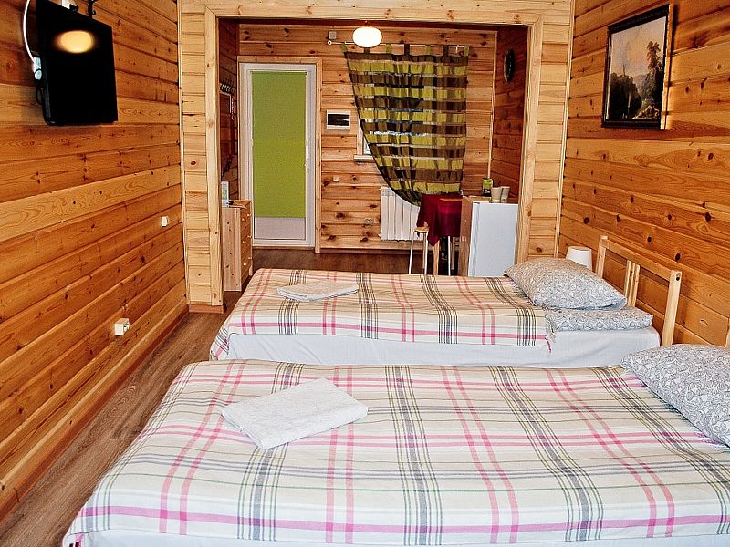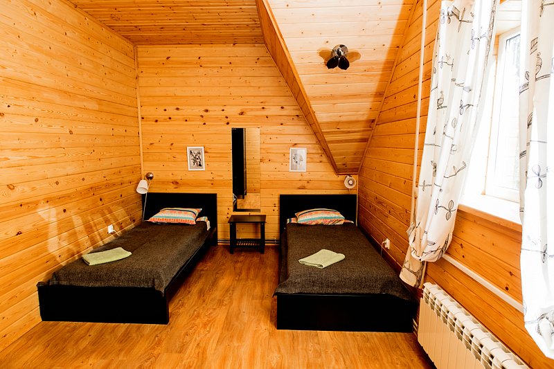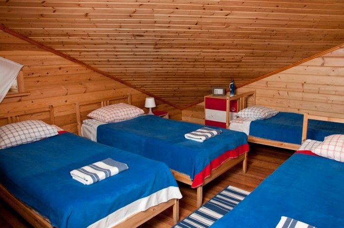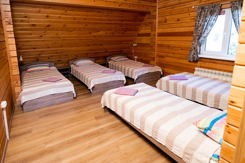 - первая спальня с двуспальной кроватью, вторая спальня с пятью полутораспальными кроватями, третья спальня с двухъярусной кроватью, четвертая спальня с четырьмя полутораспальными кроватями, санузел.