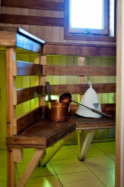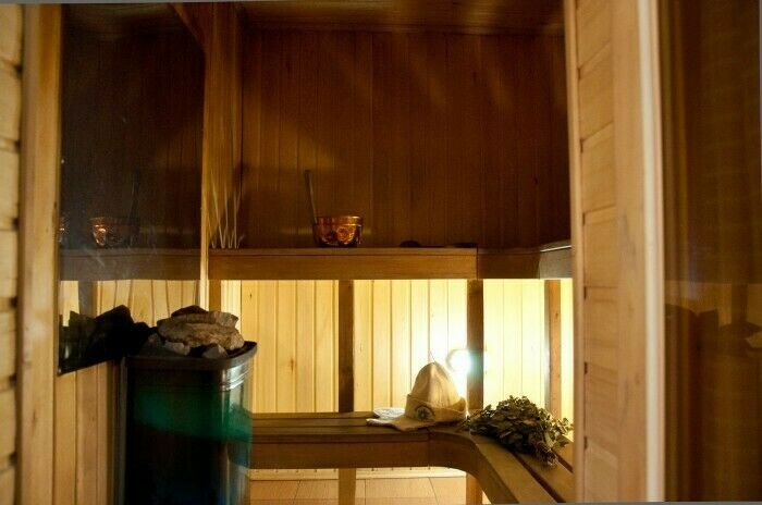 Инфраструктура: полотенцаМинимальное время аренды: 2,5 часаВремя работы: круглосуточноДля тех гостей, кто любит жар русской парной и дух древесного веника. Первый этаж: оборудованная кухня с зоной отдыха (цифровое ТВ), парная с дровяной и электрической печью.