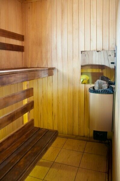 Читать полностьюДля тех гостей, кто любит жар русской парной и дух древесного веника. Первый этаж: оборудованная кухня с зоной отдыха (цифровое ТВ), парная с дровяной и электрической печью.