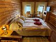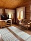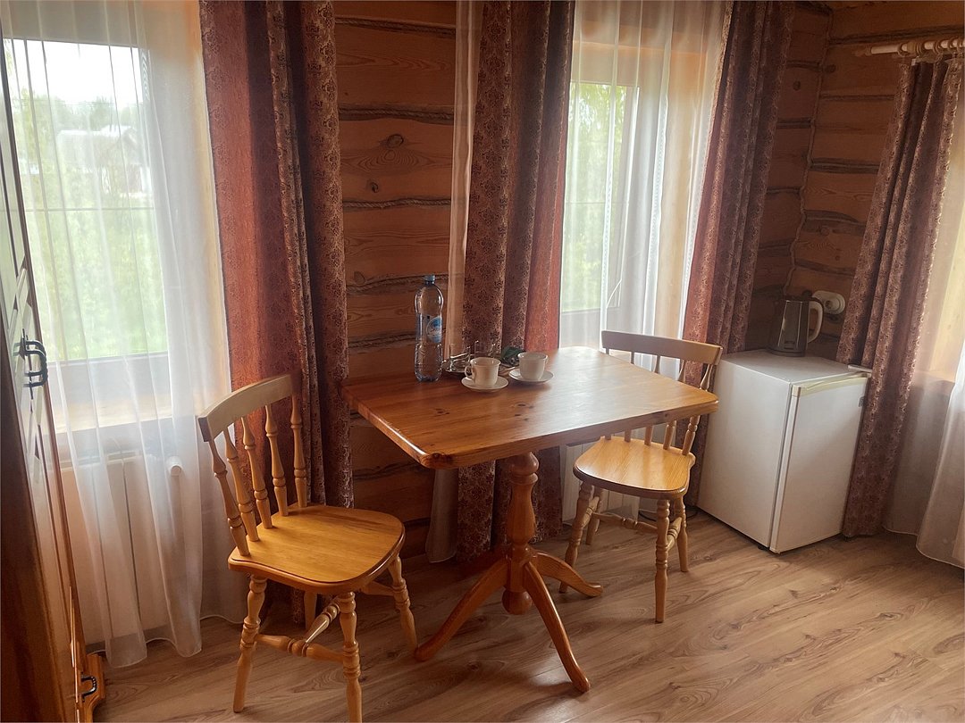 Двухместный номер, площадью 21 м2, расположен на втором этаже. Комната выполнена полностью из дерева, рубленные стены специально не покрывали защитными составами, чтоб почувствовать тепло натурального дерева. Потолки сделаны из доски, на полу ламинированный паркет. В номере имеется собственная туалетная комната, стилизованная под рубленный домик с дощатой крышей, внутри которого Вы найдете современную сантехнику с угловой ванной. В комнате из мебели имеется платяной шкаф, стол с двумя стульями, тумба, кровать с двумя прикроватными тумбочками. Из техники - холодильник, телевизор, чайник с чайными принадлежностями, фен и кондиционер.Услуги и удобства