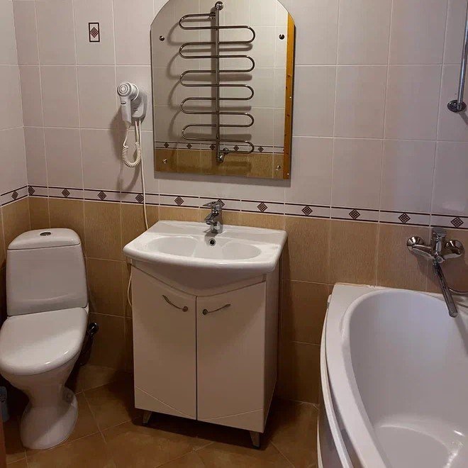 Wi-Fi, интернет, кондиционер, светильник, фен, утюг, ванная комната, ванна, теплый пол, тапочки, двуспальная кровать, односпальная кровать, стулья, шкаф для одежды, вешалки, обеденный стол, раковина, вид на город, кресло, вид во двор, стол, тумба, туалетные средства, туалет, цифровое тв, телевизор с плоским экраном, мини-холодильник, рабочий столВ номере