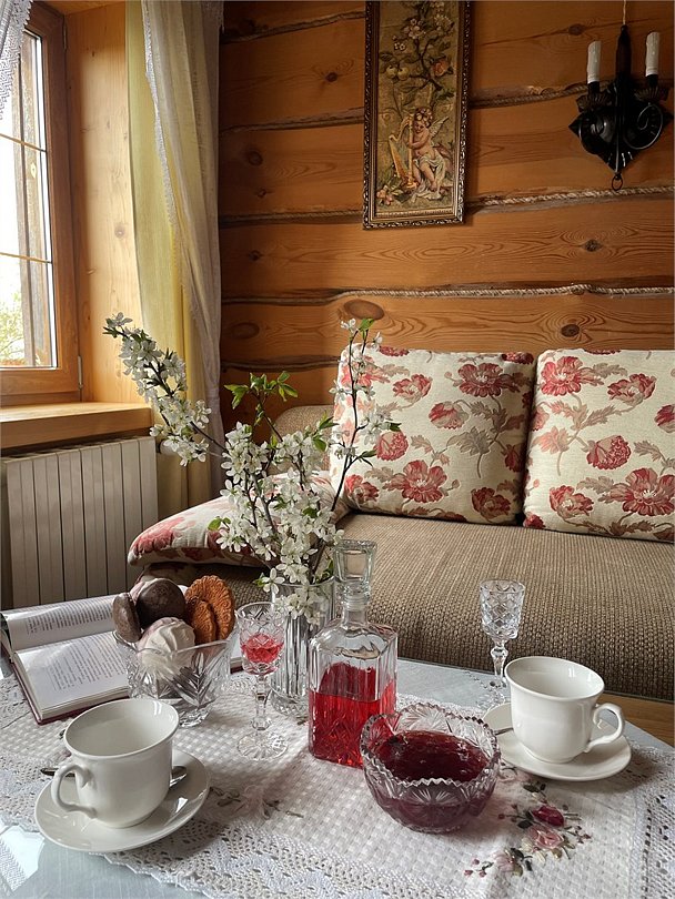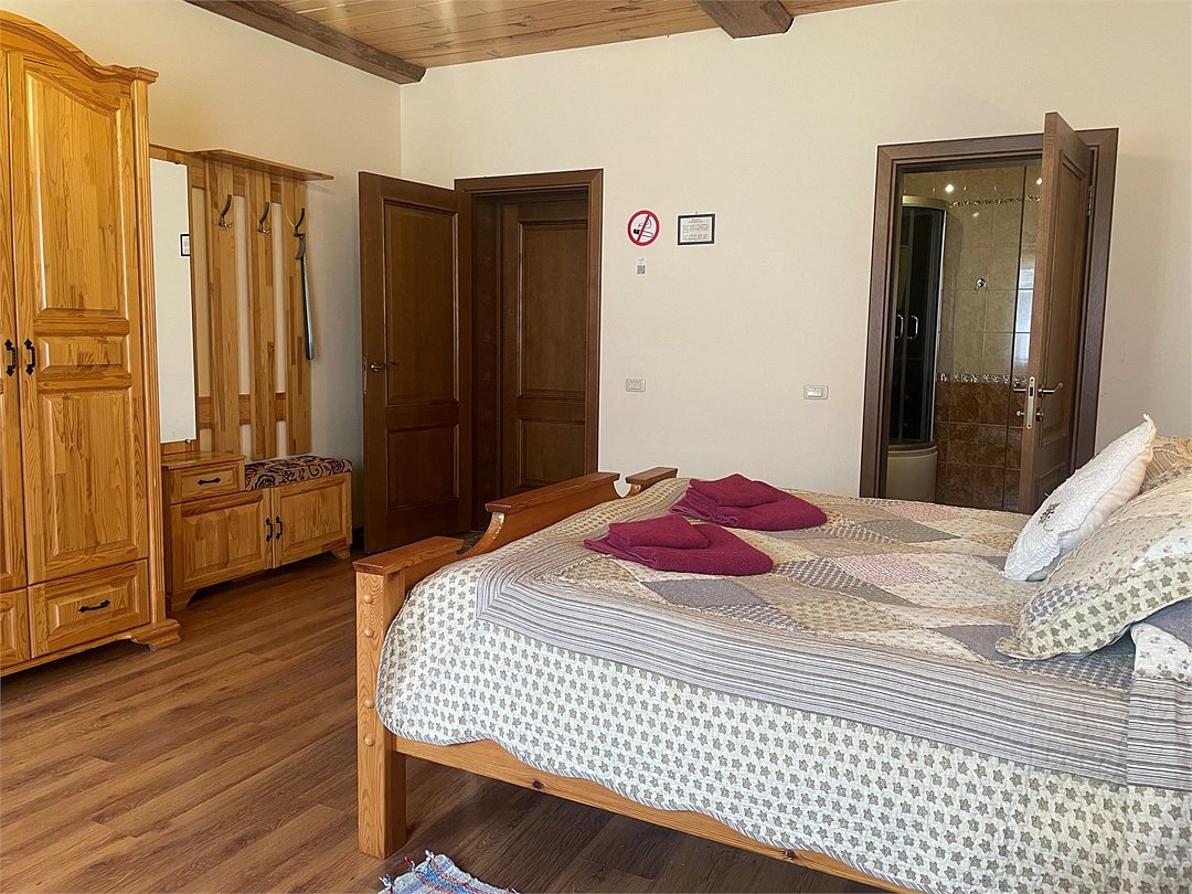 Номер расположен на первом этаже здания. Стены в комнате оштукатурены и покрашены экологичными красками, а потолки сделаны из массивных деревянных балок и досок. В номере деревянная мебель исключительно ручной работы, покрытая лаком. В номере имеется собственная ванная комната с туалетными принадлежностями, одна большая двуспальная кровать и диван-кровать.Услуги и удобства