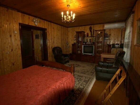 Комната полностью отделана деревом,есть телевизор,и кондиционер, также на первом этаже большая столовая,кухня,ванная,и туалет.