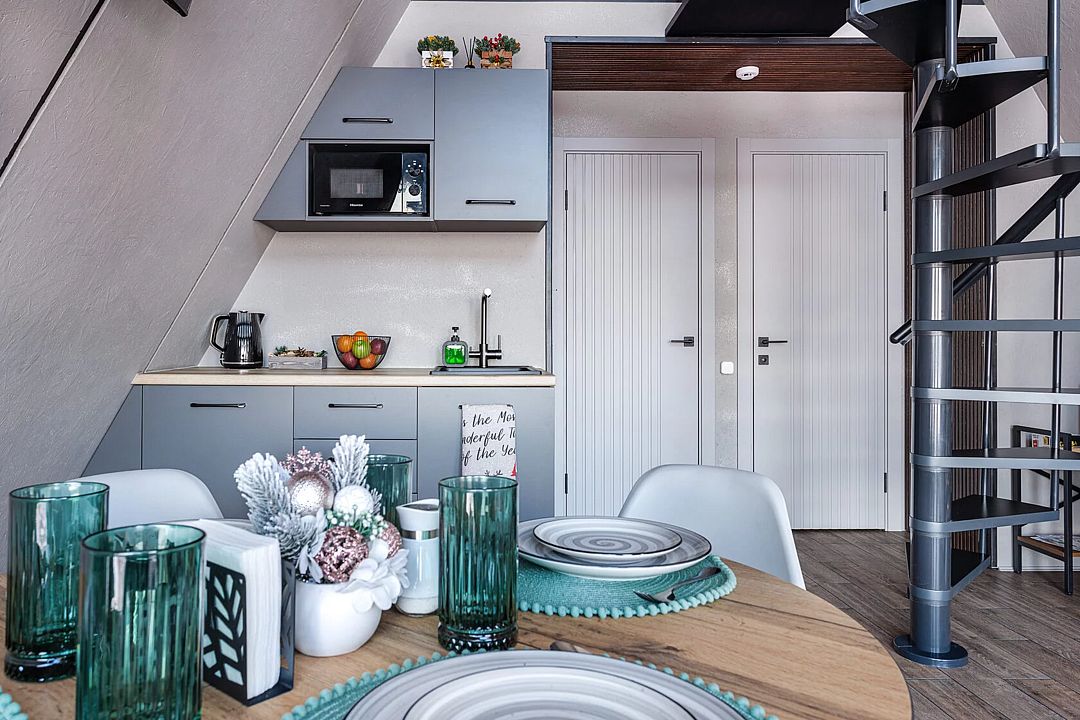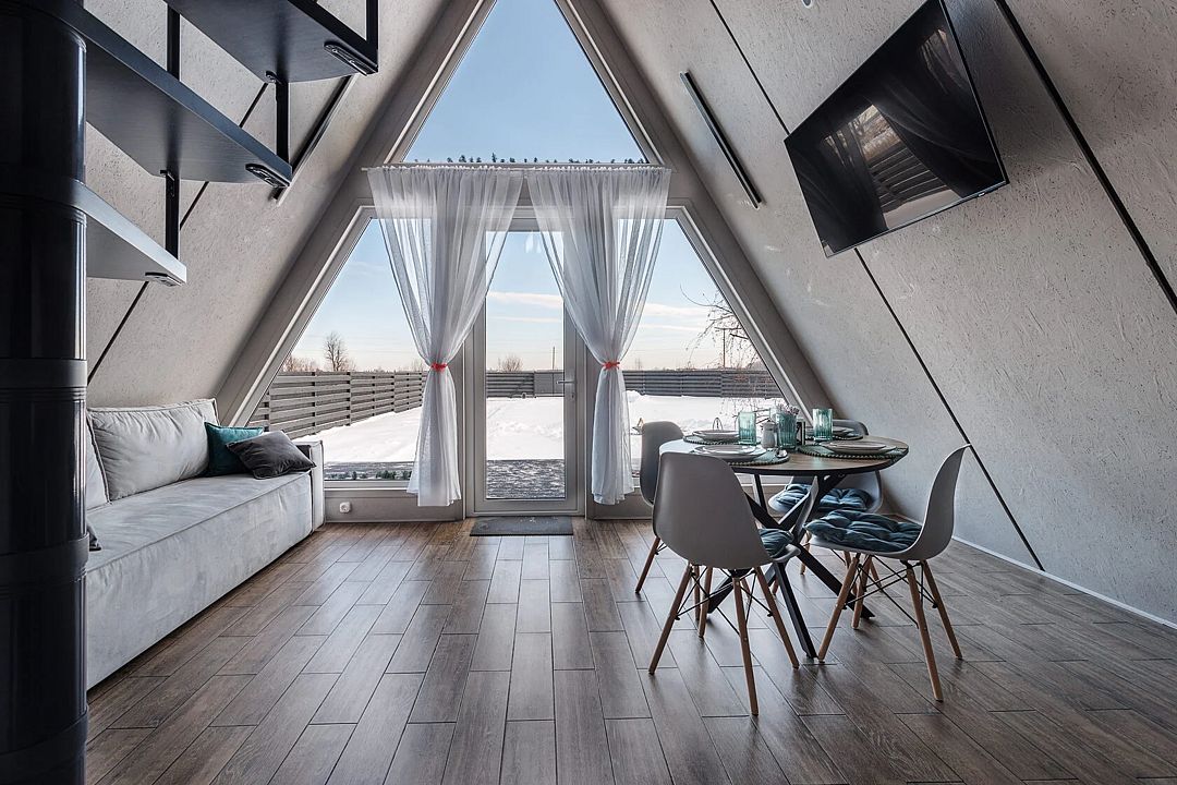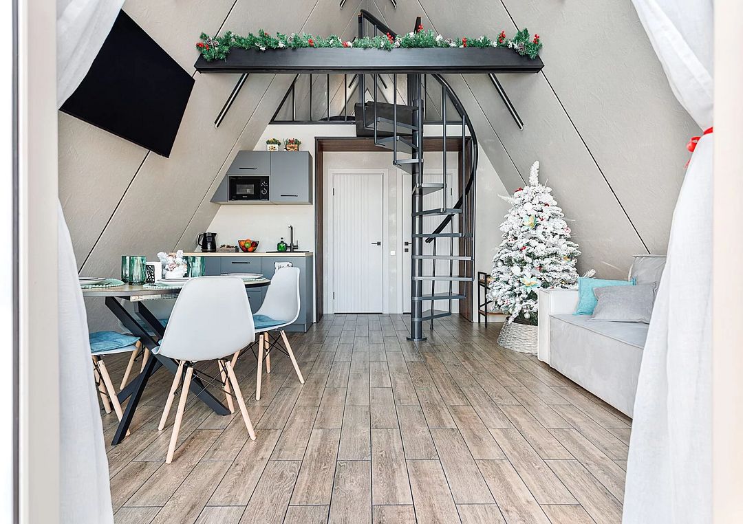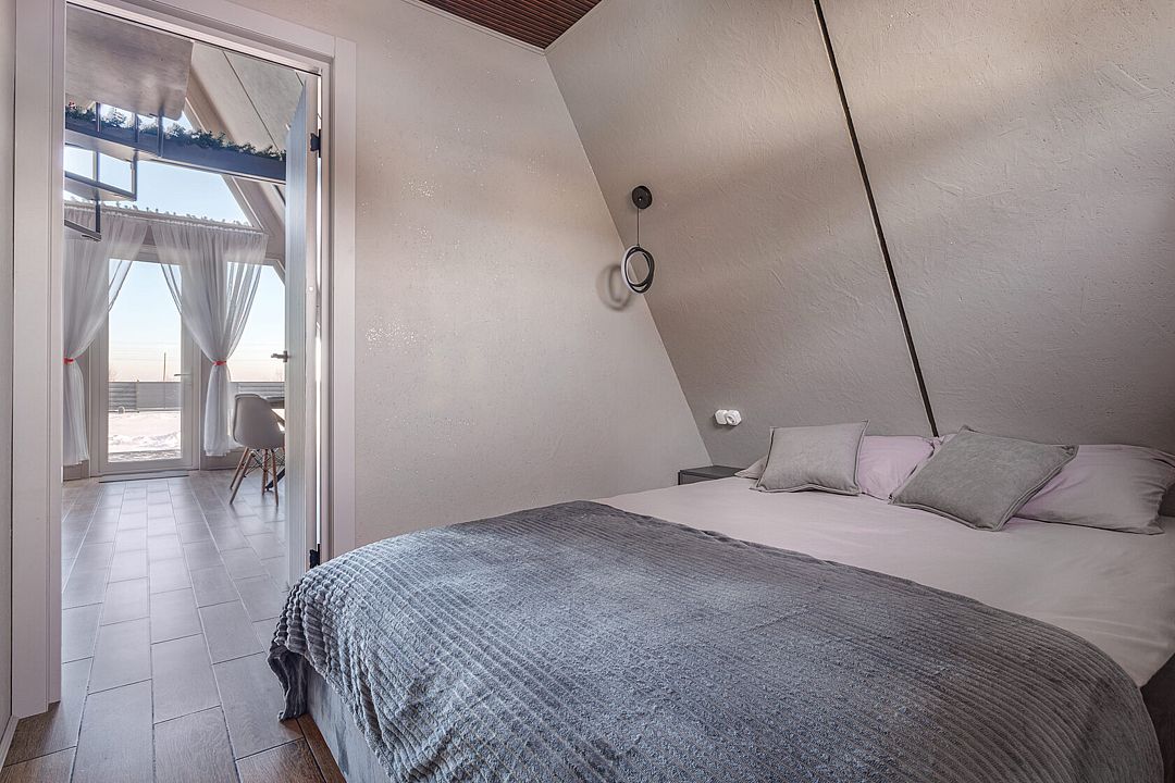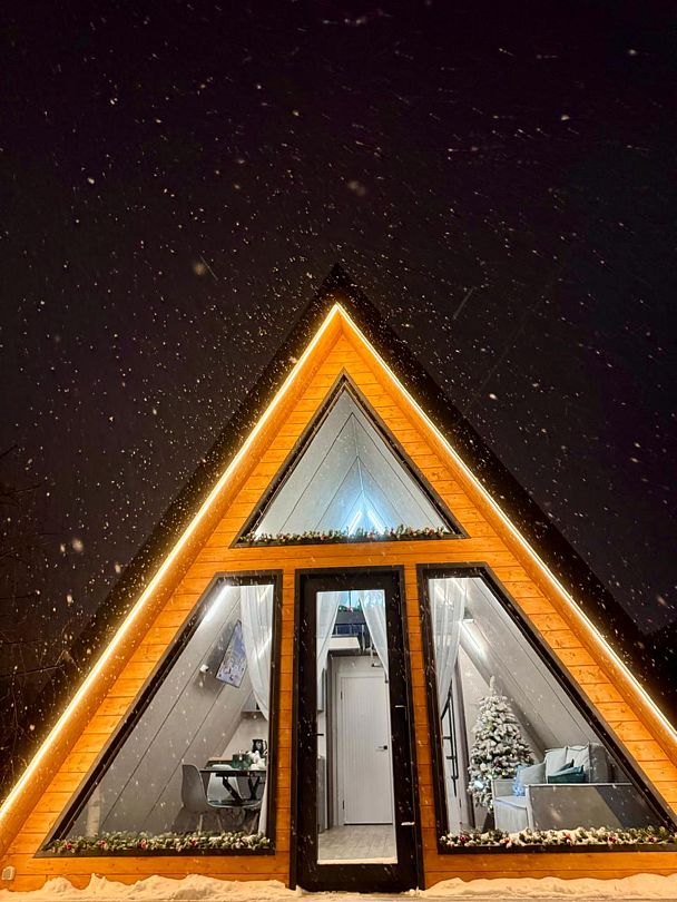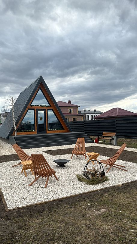 Дома в стиле A-фрейм отличается домашней атмосферой и предлагает всё необходимое для комфортного отдыха. Рядом оборудована мангальная зона для приготовления блюд на свежем воздухе.