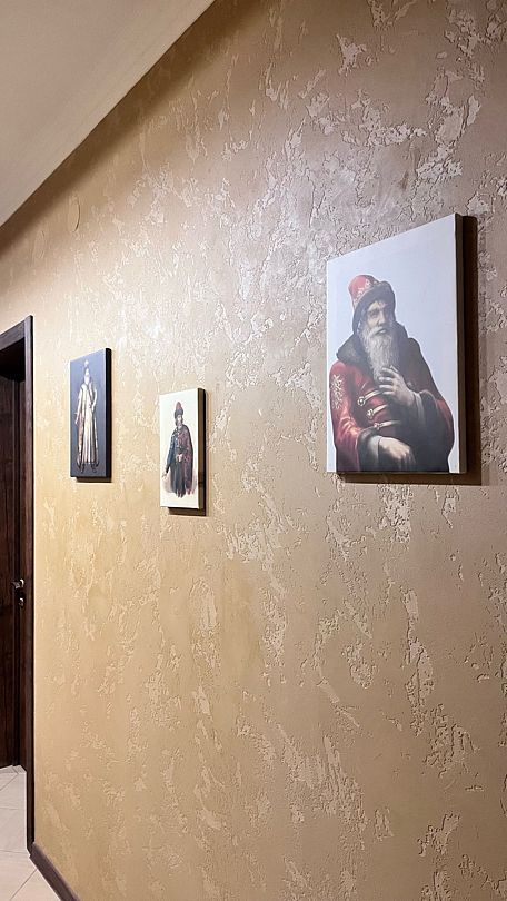 В санузле имеется душевая кабина, махровые халаты, тапочки и всем необходимые косметические средства. В спальне имеется три односпальные кровати. В гостиной два раскладывающихся больших дивана с возможностью размещения 4 человек. Из номера открывается прекрасный вид на храм Михаила Архангела, пойму реки Каменка и коней, пасущихся в специальных загонах. Номер оснащен ЖК SMART телевизором, высокоскоростным Wi-Fi интернетом, холодильником с прохладительными напитками (включены в стоимость), шкафом, креслами, обеденной зоной.