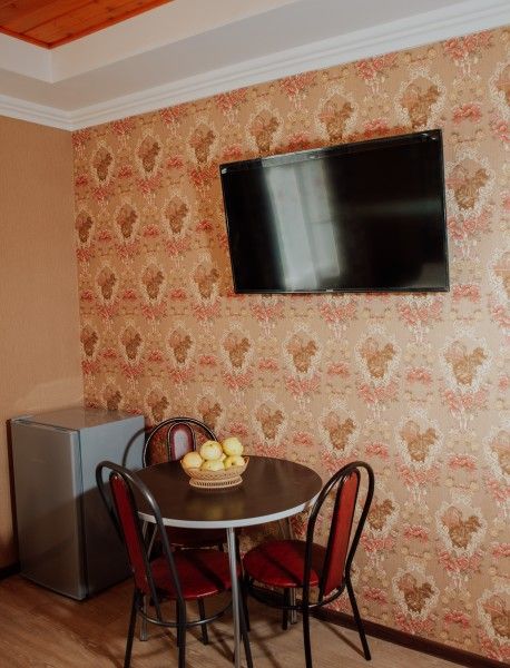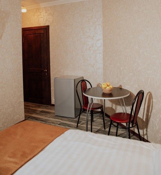 Большая двуспальная кровать, обеденная зона, холодильник с прохладительными напитками (включены в стоимость). В номере имеется свой санузел с душевой кабиной и всеми необходимыми косметическими средствами, тапочки. ЖК телевизор, высокоскоростной Wi-Fi интернет.