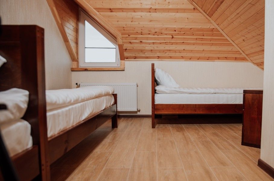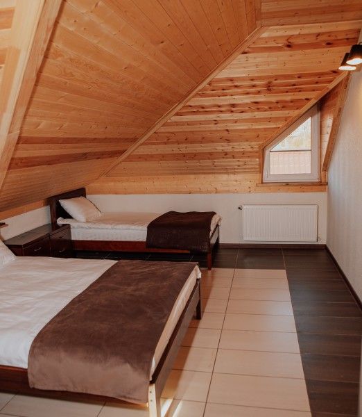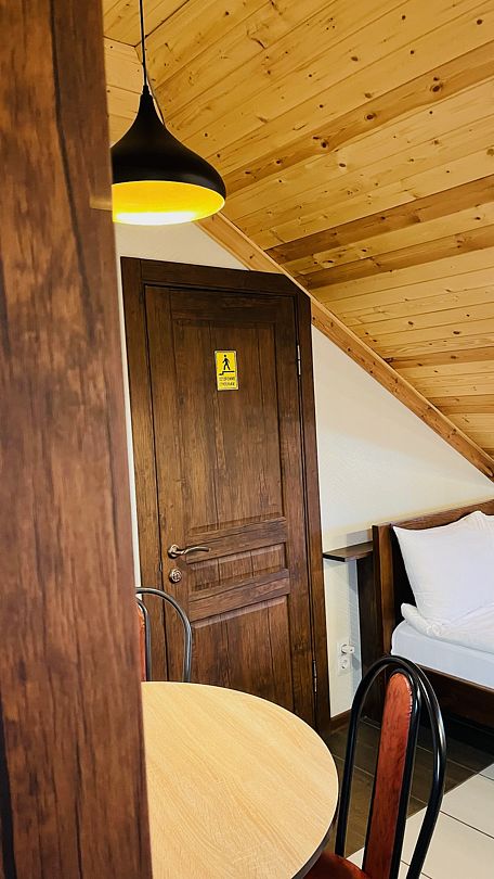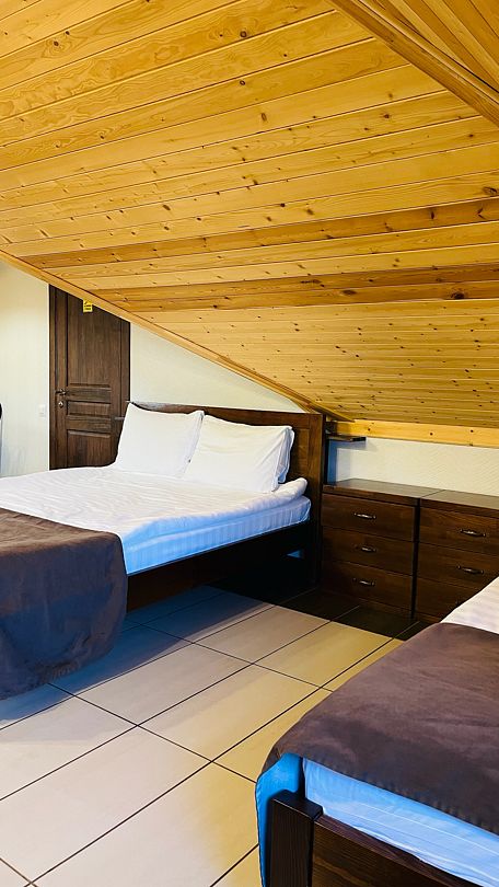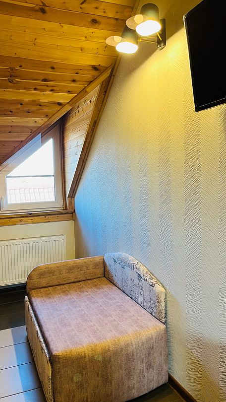 Номер семейный на троих расположен на мансардном этаже.