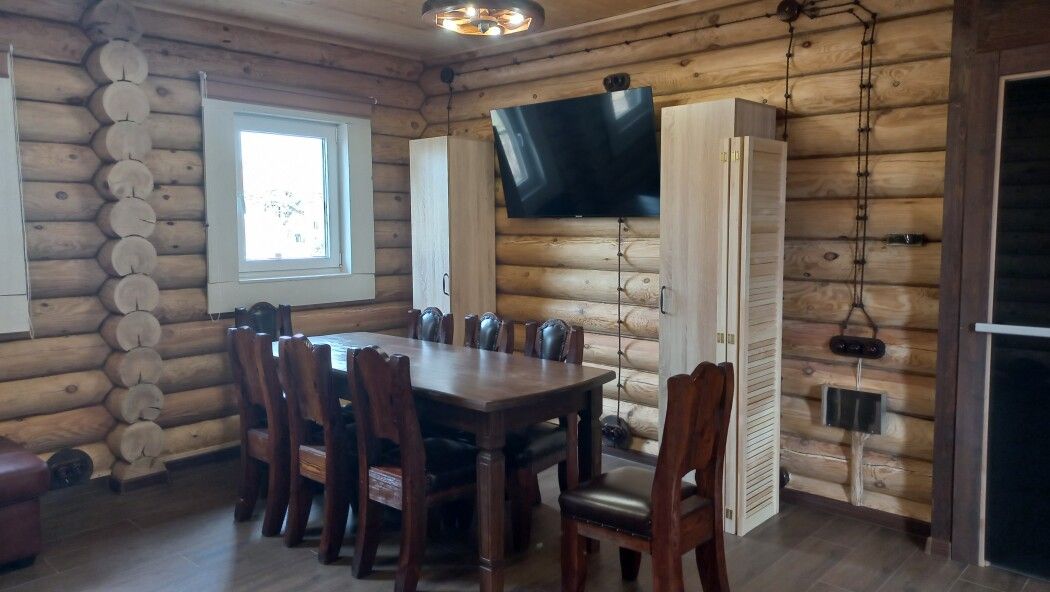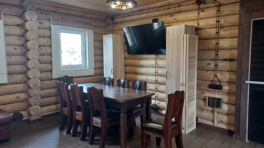 Баня-сауна с большой комнатой отдыха и кухней.
