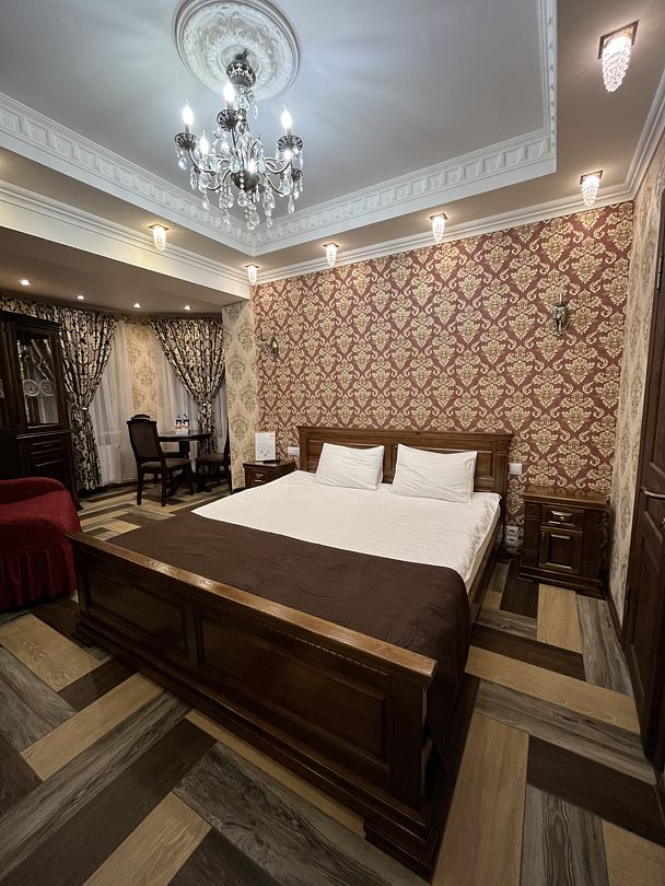 Номер Люкс. Состоит из двух комнат (гостиной и спальни) и санузла. Расположен на втором этаже.