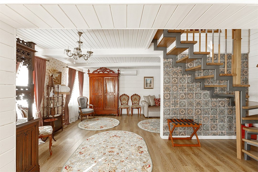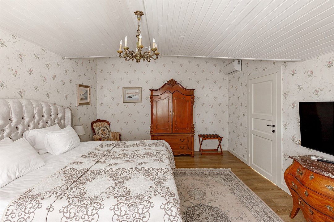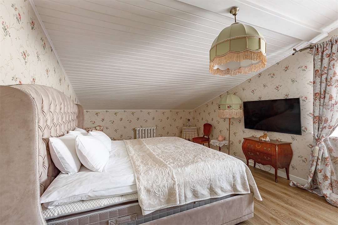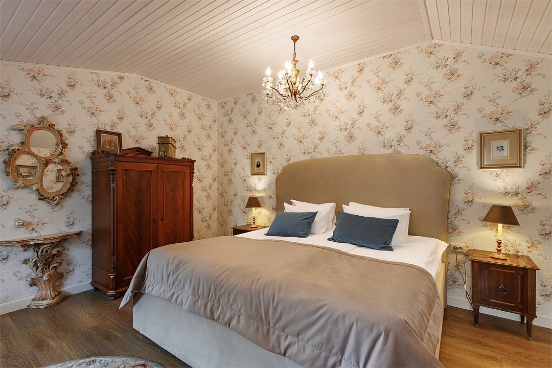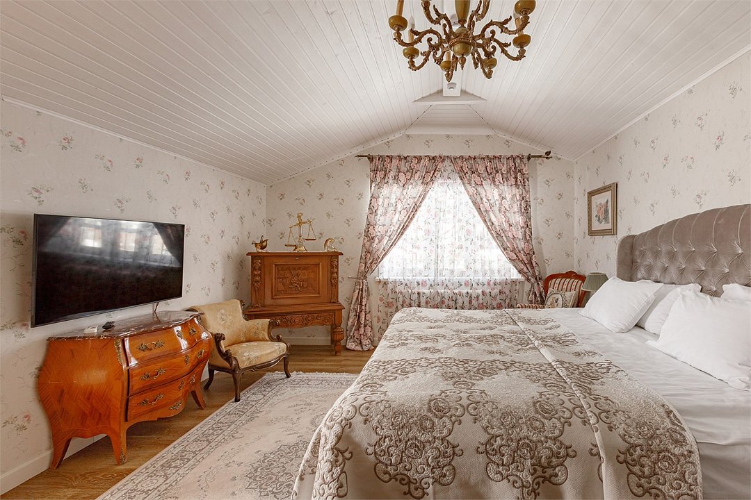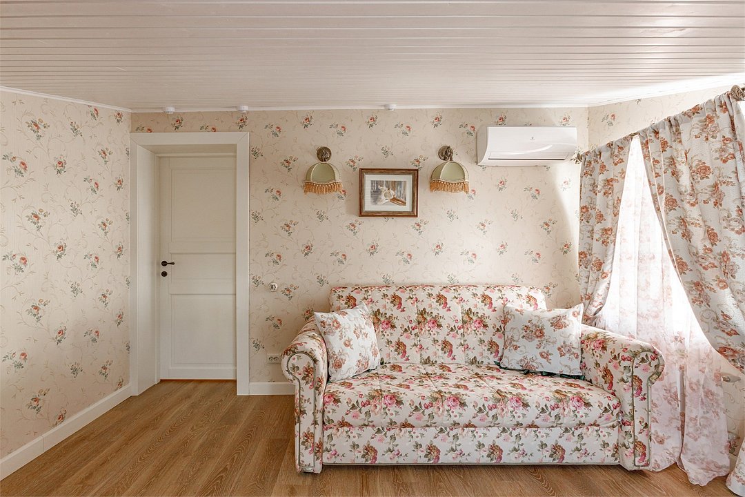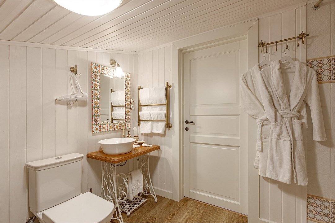 На 32 квадратных метрах пространства мастерски создана атмосфера домашнего уюта и изысканной элегантности. Центральное место в номере занимает великолепная кровать king-size с премиальным матрасом, гарантирующая безмятежный и комфортный сон. Интерьер номера украшен тщательно подобранной антикварной мебелью, которая создает особую атмосферу и погружает в атмосферу загородного дома. Каждая деталь обстановки подчеркивает уникальный характер этого пространства.Услуги и удобства