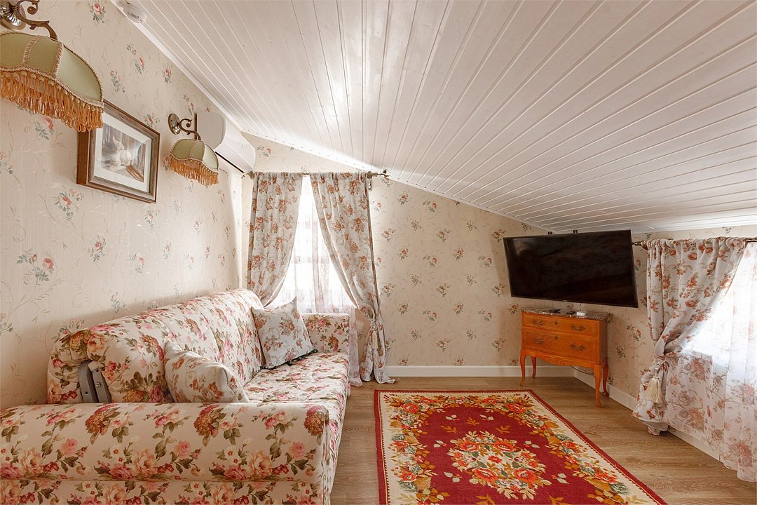 Номер с гостиной и спальней. Спальня оснащена кроватью кинг сайз , а гостиная удобным диваном. Во всех комнатах антикварная и винтажная мебель , телевизоры и кондиционеры. Ванная укомплектована необходимым оборудованием.Услуги и удобства