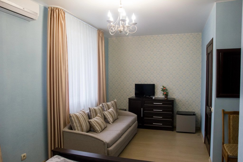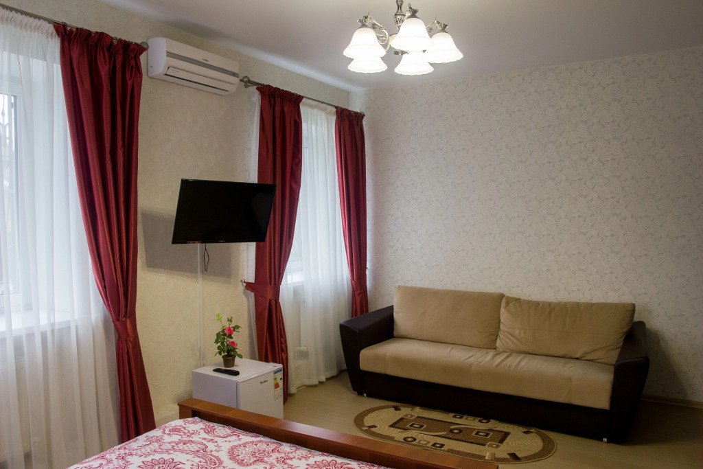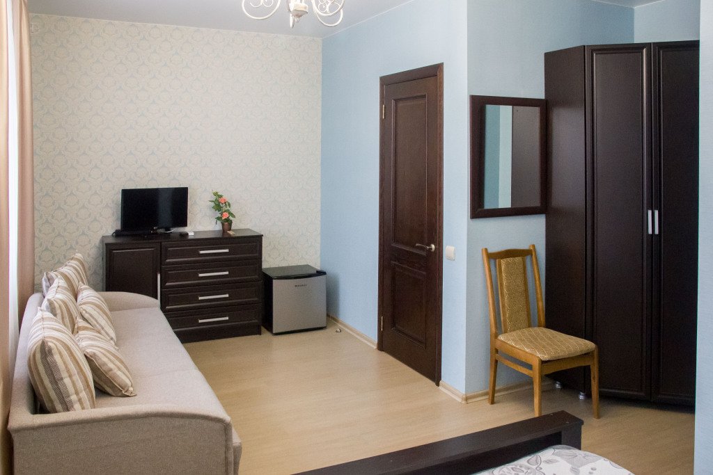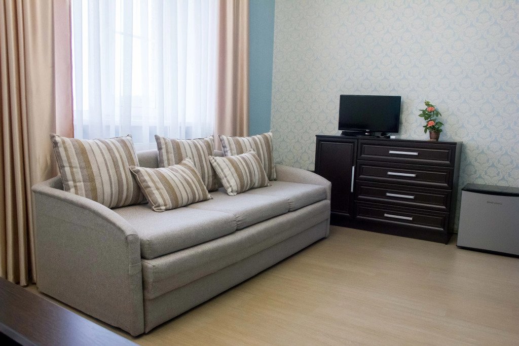 В номере вы найдёте телевизор. Оснащение зависит от выбранной категории номера.