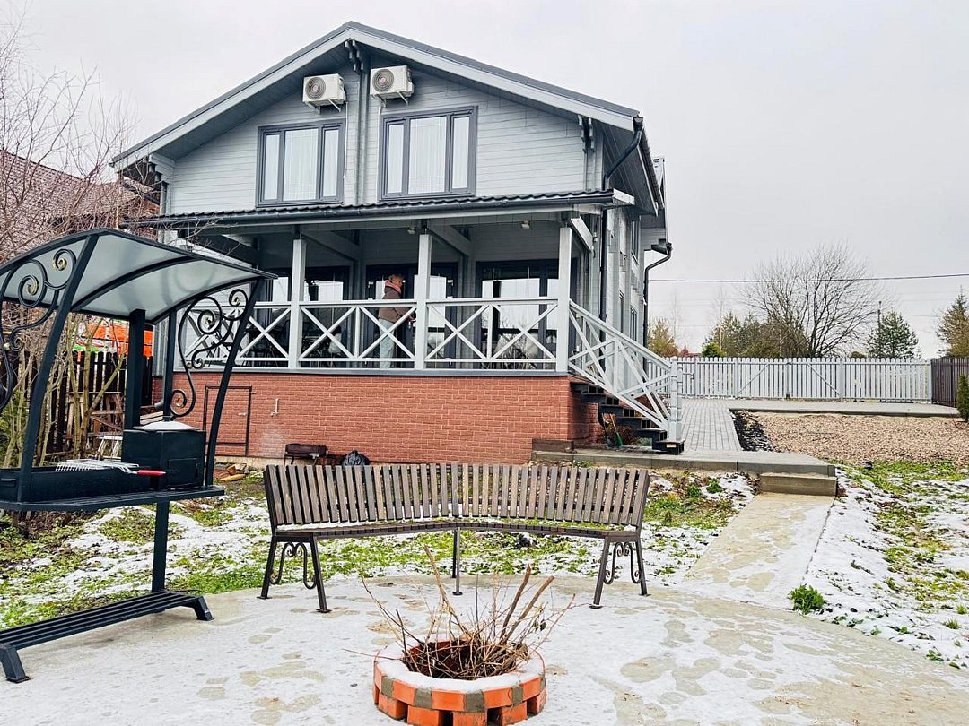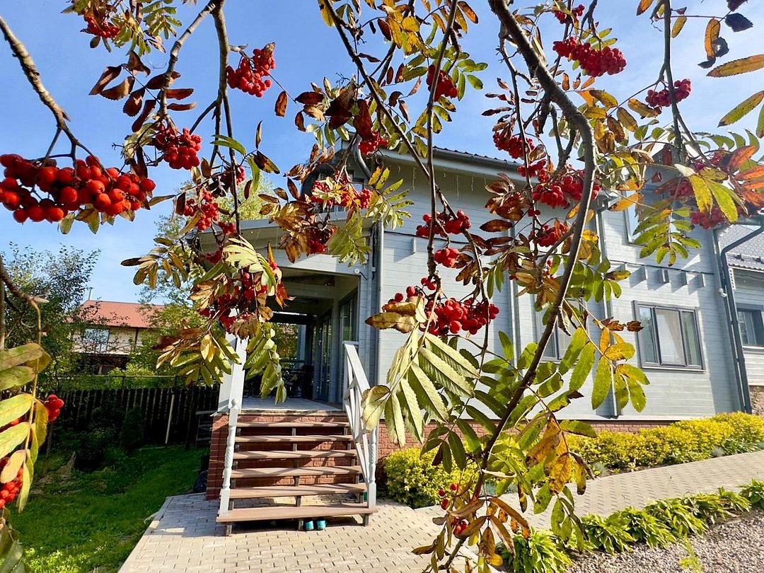 Wi-Fi, санузел, банные принадлежности, банные полотенца, тапочки, косметические средства, терраса, диван, стулья, шкаф для одежды, вешалки, обеденный стол, зеркало, раковина, вид на сад, вид во двор, три ванные комнаты, стол, туалетные средства, санузел на этаже, туалет, панорамные окна, душ на этаже, гигиенический душ, четыре двуспальные кроватиВ коттедже