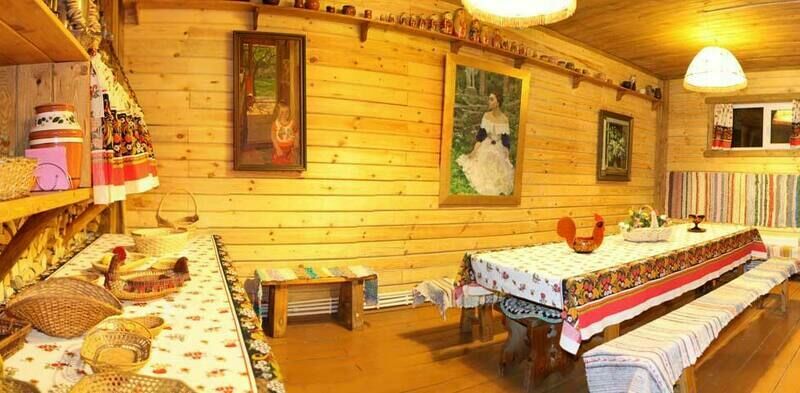 В отдельном помещении находится трапезная, оформленная в деревенском стиле. Вместительность трапезной до 20 человек. Органично вписаны в интерьер: караоке, телевизор, DVD проигрыватель, музыкальный центр. В трапезной Вы сможете отведать домашних блюд.