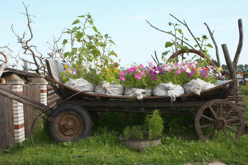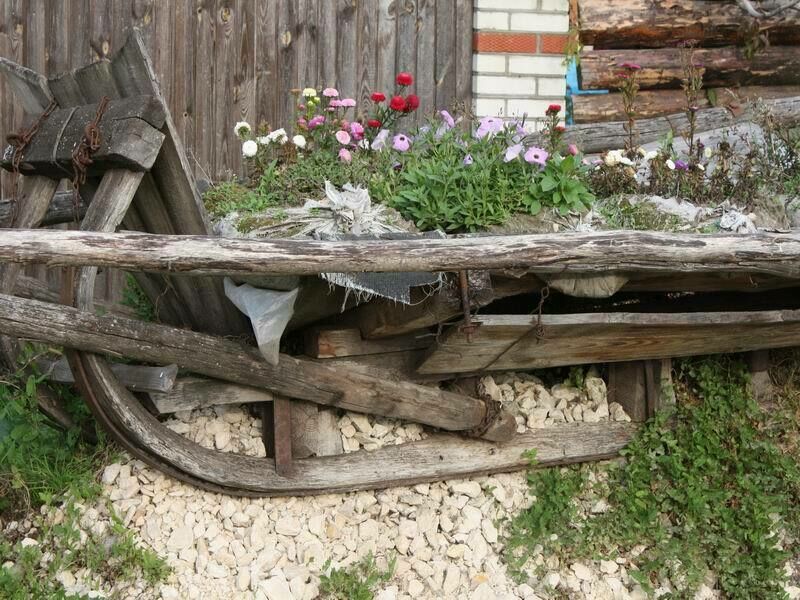 Двор. Просторный дворик порадует большим количеством зелени весной, летом и осенью. Здесь же можно увидеть традиционные сани, в которых теперь разбита клумба.