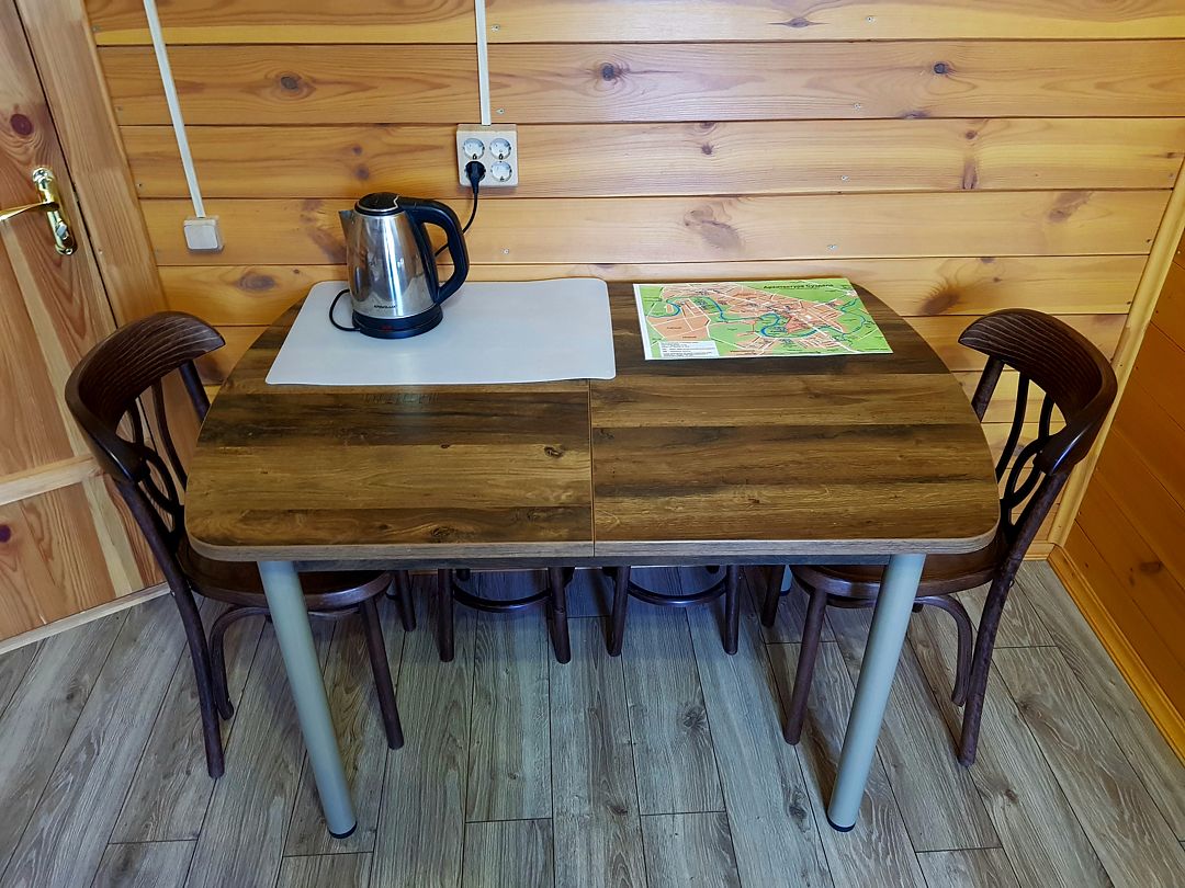 В номере есть электрический чайник, телевизор, работает Wi-Fi. В общей зоне — посуда, приборы, холодильник и микроволновая печь.