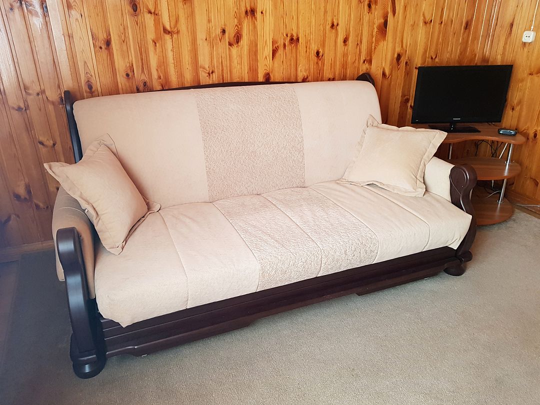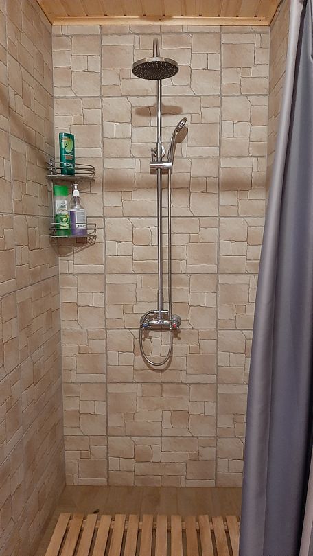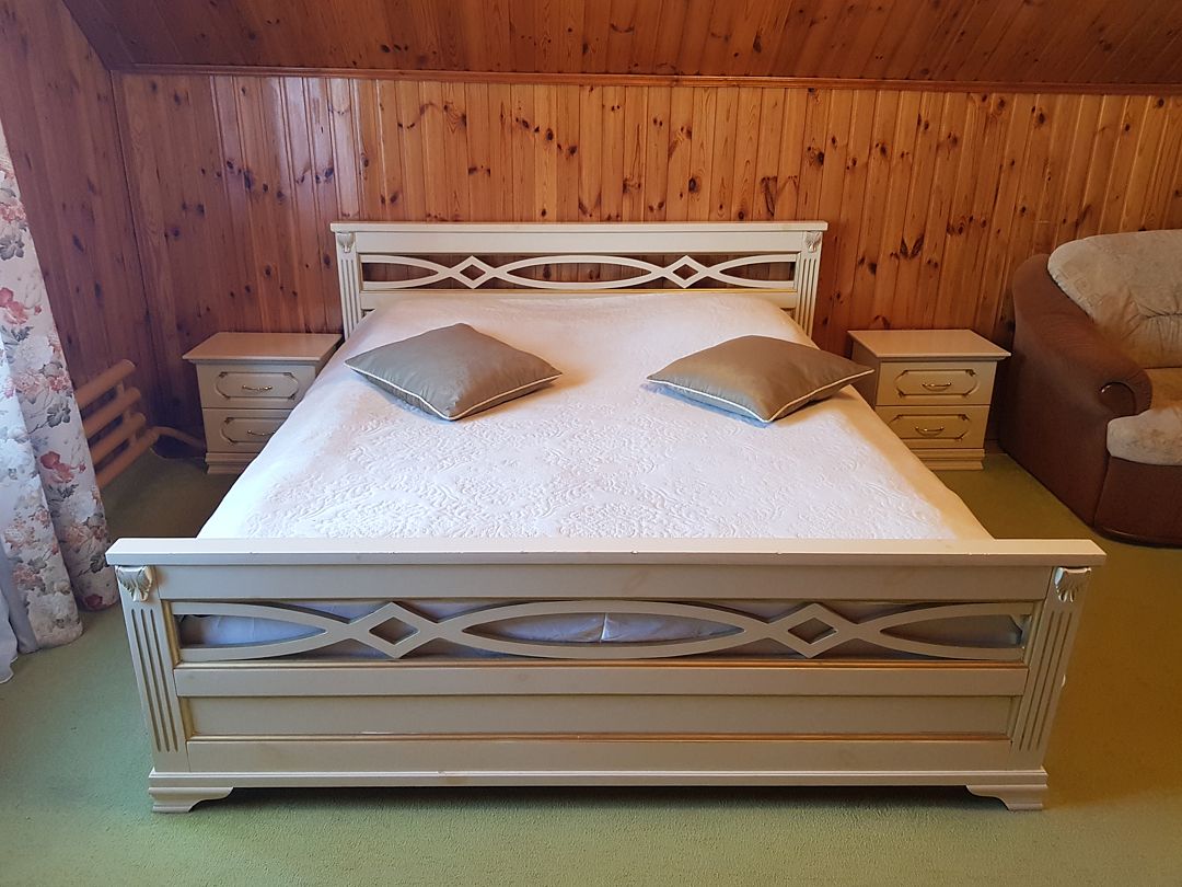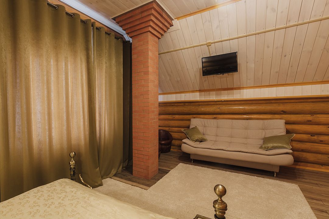 Четырёхместный номер (с двуспальной кроватью и двуспальным раскладным диваном) с санузлом и душевой кабиной.