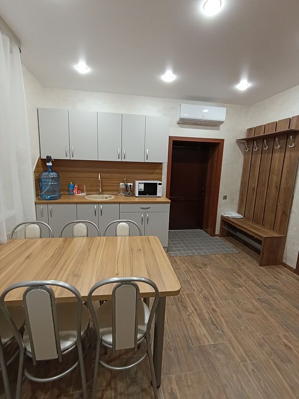 Инфраструктура: тапочки, зона отдыха, полотенца, простыни, березовые веникиМинимальное время аренды: 3 часаБаня с дровяной печкой, кухней и мангальной зоной.