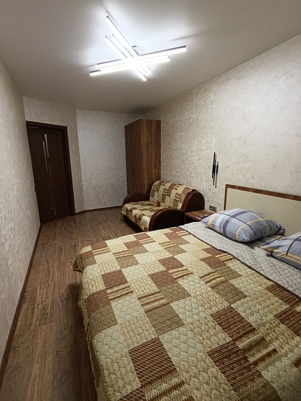 На каждом этаже по кухне, ванной комнате и по две спальни. Спальные комнаты оснащены двуспальными кроватями, в двух из них дополнительно имеются раскладные диваны.