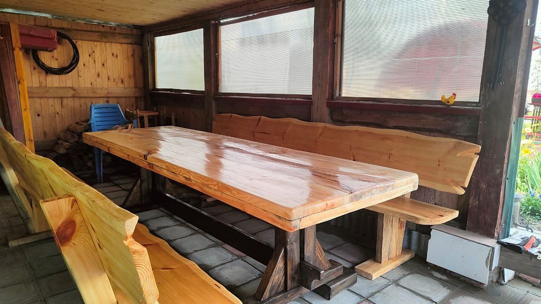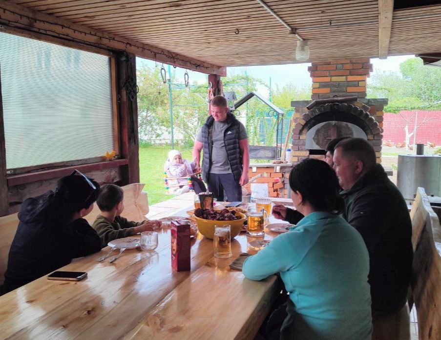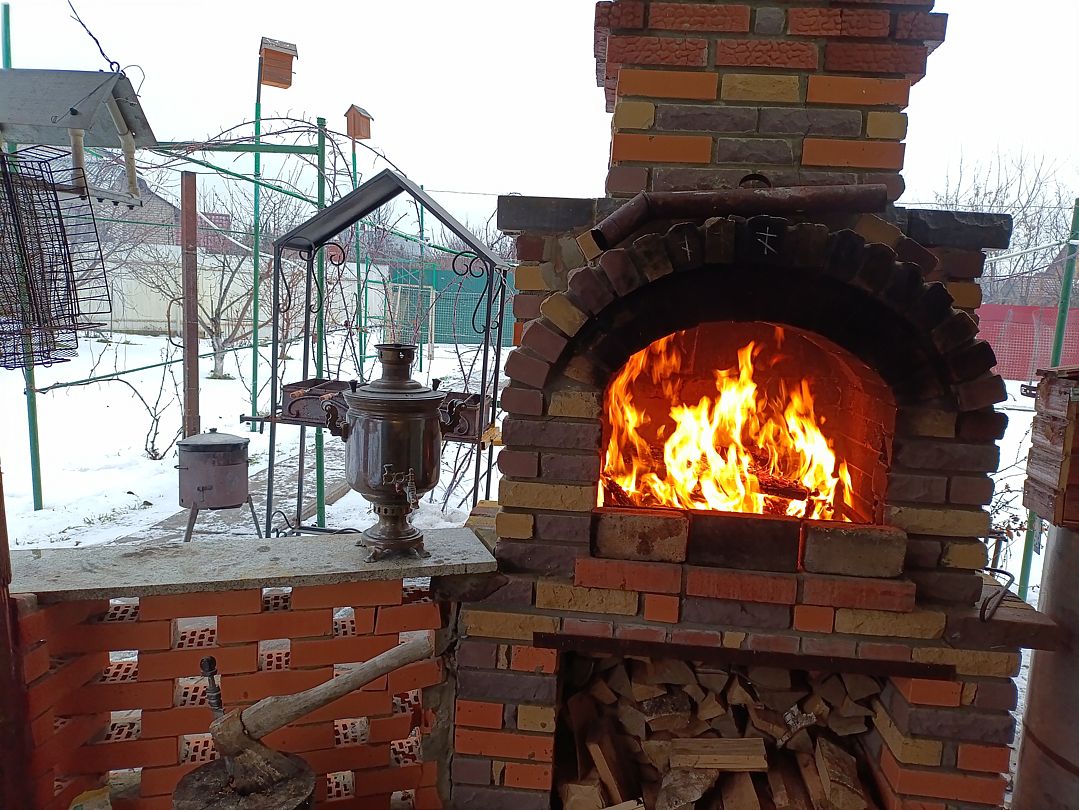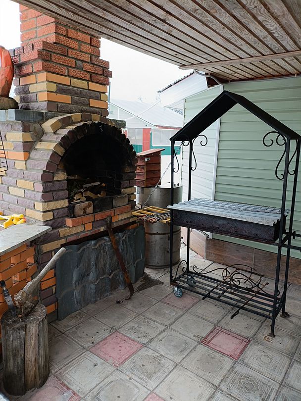 Баня с дровяной печкой, кухней и мангальной зоной.
