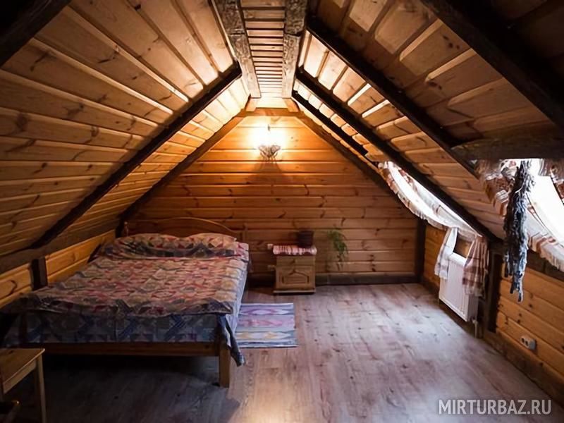 Первый гостевой дом — двухэтажный сруб, второй этаж - мансардный.