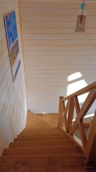 В доме на первом этаже расположены раскладывающийся шикарный диван, два мягких пуфа, телевизор, электрочайник, мини - холодильник, чайная станция, бутилированная вода. Просторная туалетная комната: душ, полотенца, индивидуальные средства гигиены, фен. На втором этаже находится стильная кровать «кинг» , 2 прикроватные тумбы, комод. Авторская живопись на стенах, мебель ручной работы.