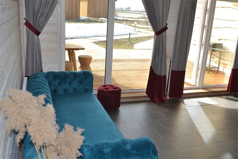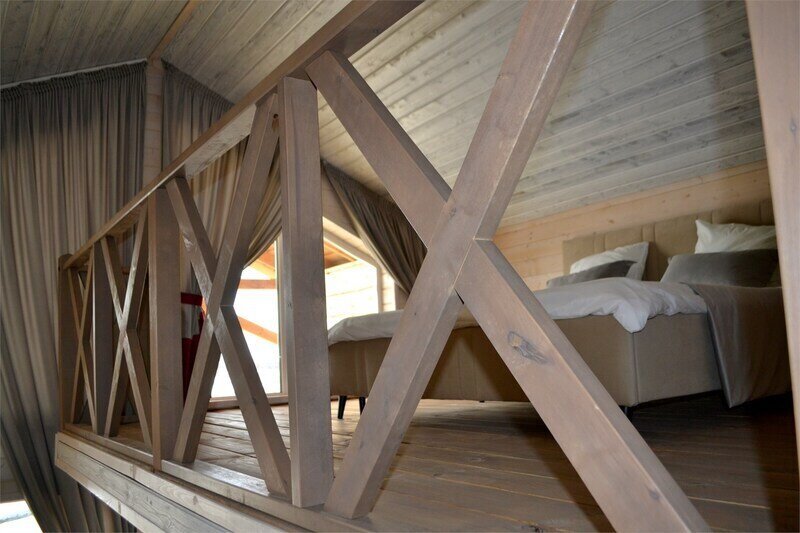 Трендовый дизайн коттеджей, тонкий витающий в воздухе аромат свежей древесины, авторская живопись на стенах, мебель ручной работы, крахмальное белье, безбарьерные душевые в санузлах. Здесь каждая деталь стимулирует воображение, вдохновляет и восхищает.