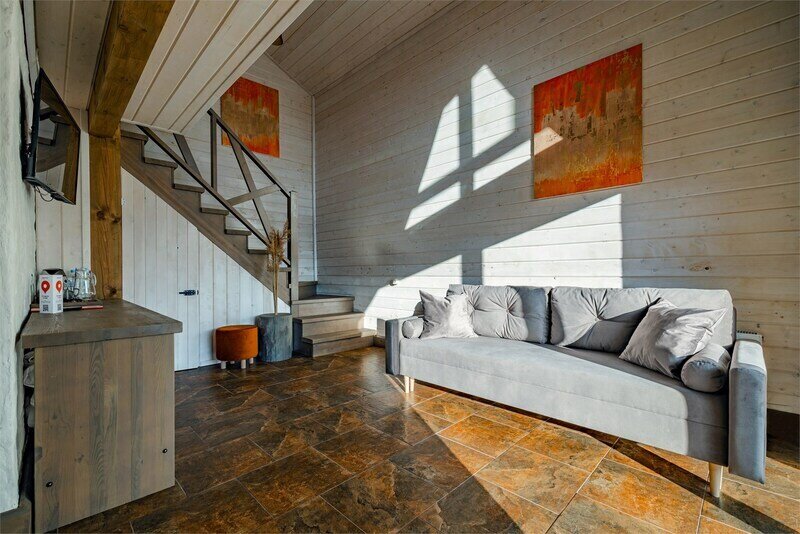 Для проживания доступны современные номера на берегу реки, где вы сможете отдохнуть от шума города. Здесь вы сможете насладиться закатом с бокалом вина, принять душ и уютно устроиться в постели. А мебель ручной работы, итальянские люстры, свежий аромат древесины и отопление подарят максимальный комфорт и эстетическое наслаждение.